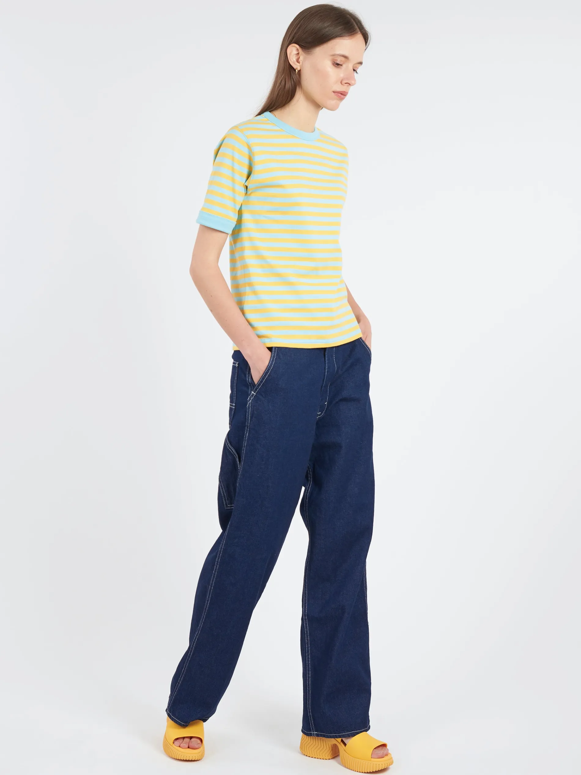 A relaxed fit painter pants features big pockets on the hip. You can wear all year round and enjoy the natural fade after the wash.