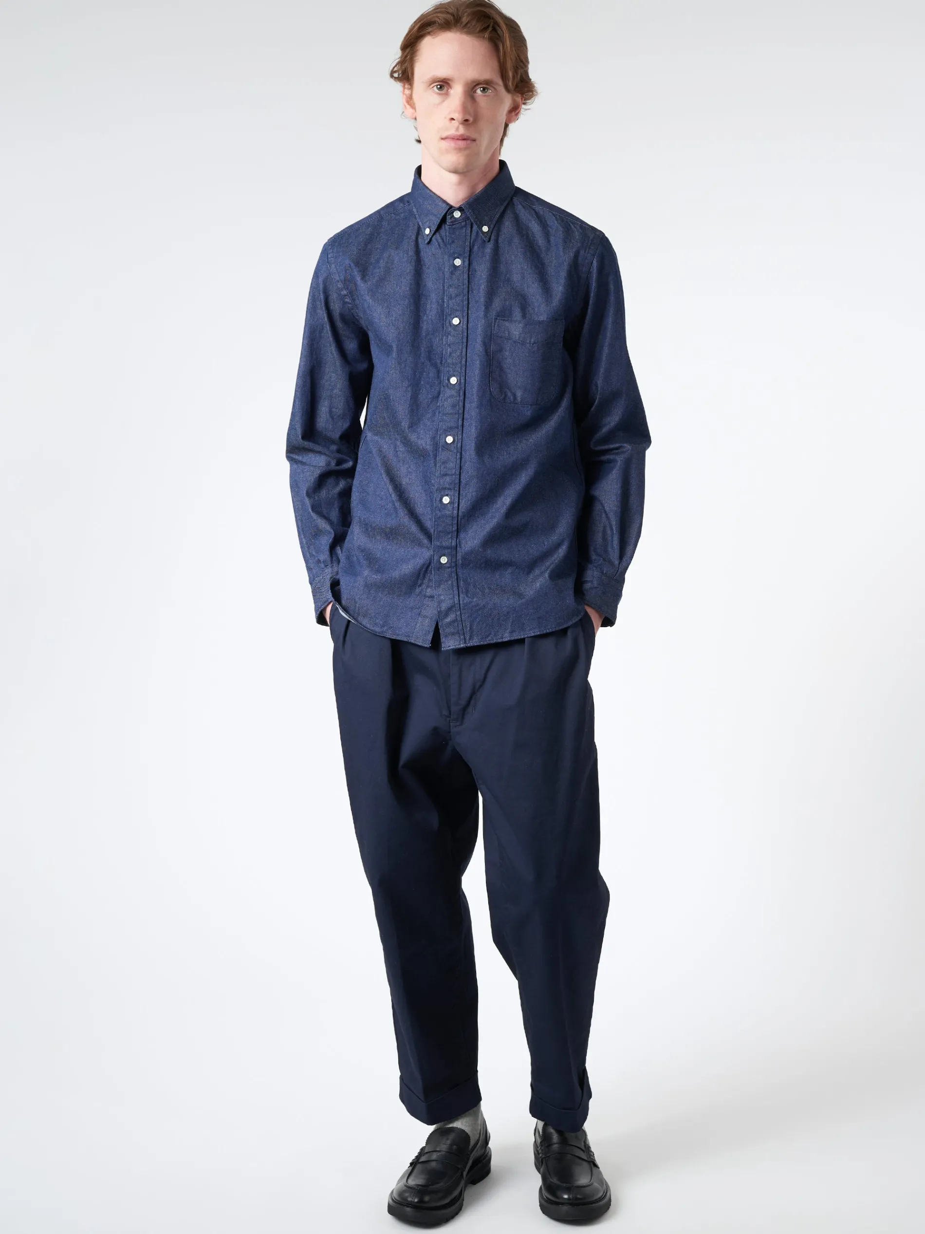 Renowned for its heritage workwear styles, this Beams Plus denim shirt is simply detailed with a button-down collar and patch pocket at the chest.