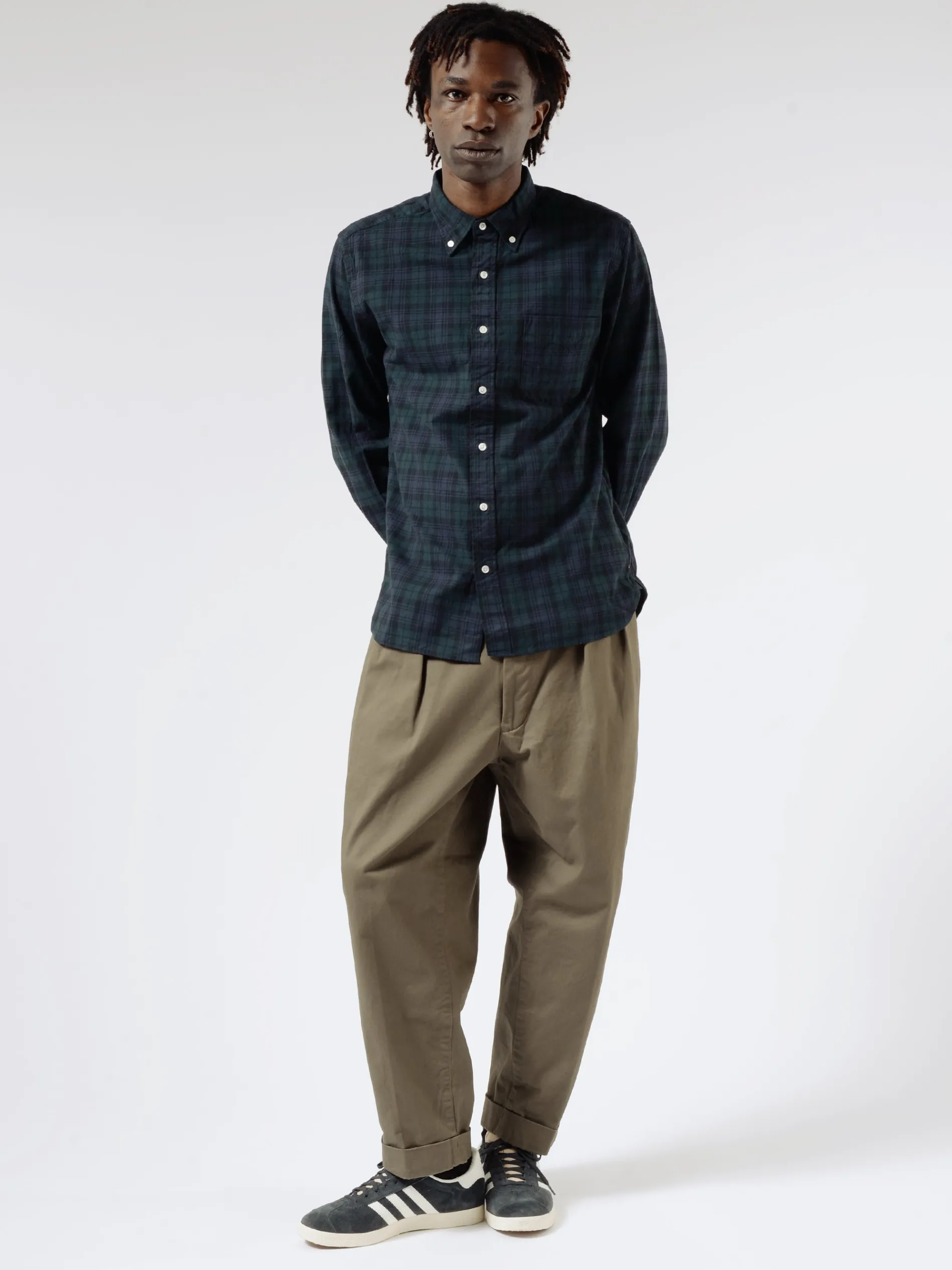 BEAMS PLUS Button Down Shirt in a classic blackwatch tartan. Crafted in Japan from pure cotton.