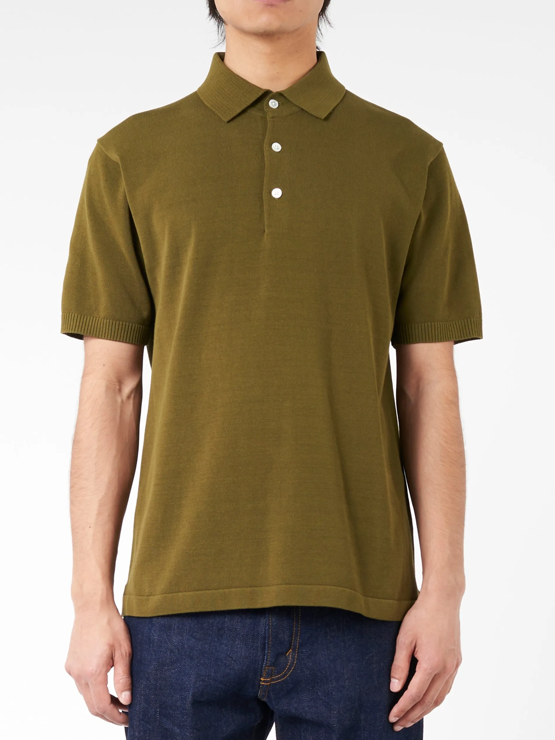 BEAMS PLUS short-sleeved polo shirt with a basic silhouette and simple design. Made with a 12-gauge fabric with a dry and crisp feel.