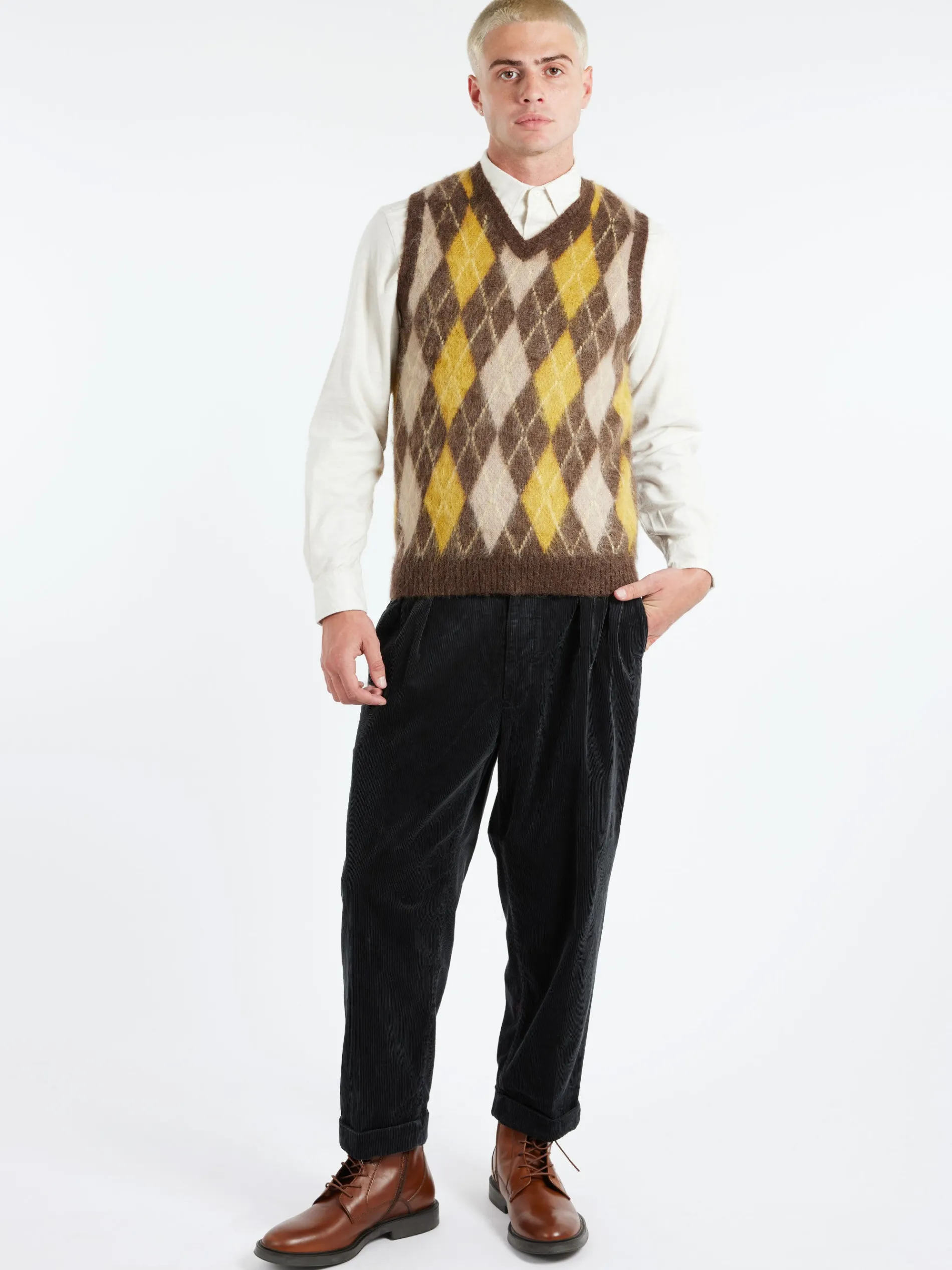 A soft, brushed knit vest from BEAMS PLUS with a classic argyle pattern. A timeless style that can be layered with various tops.