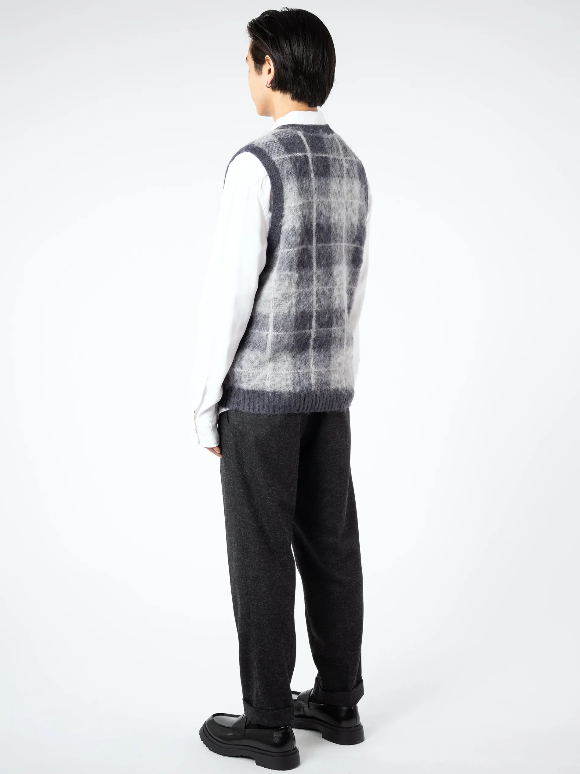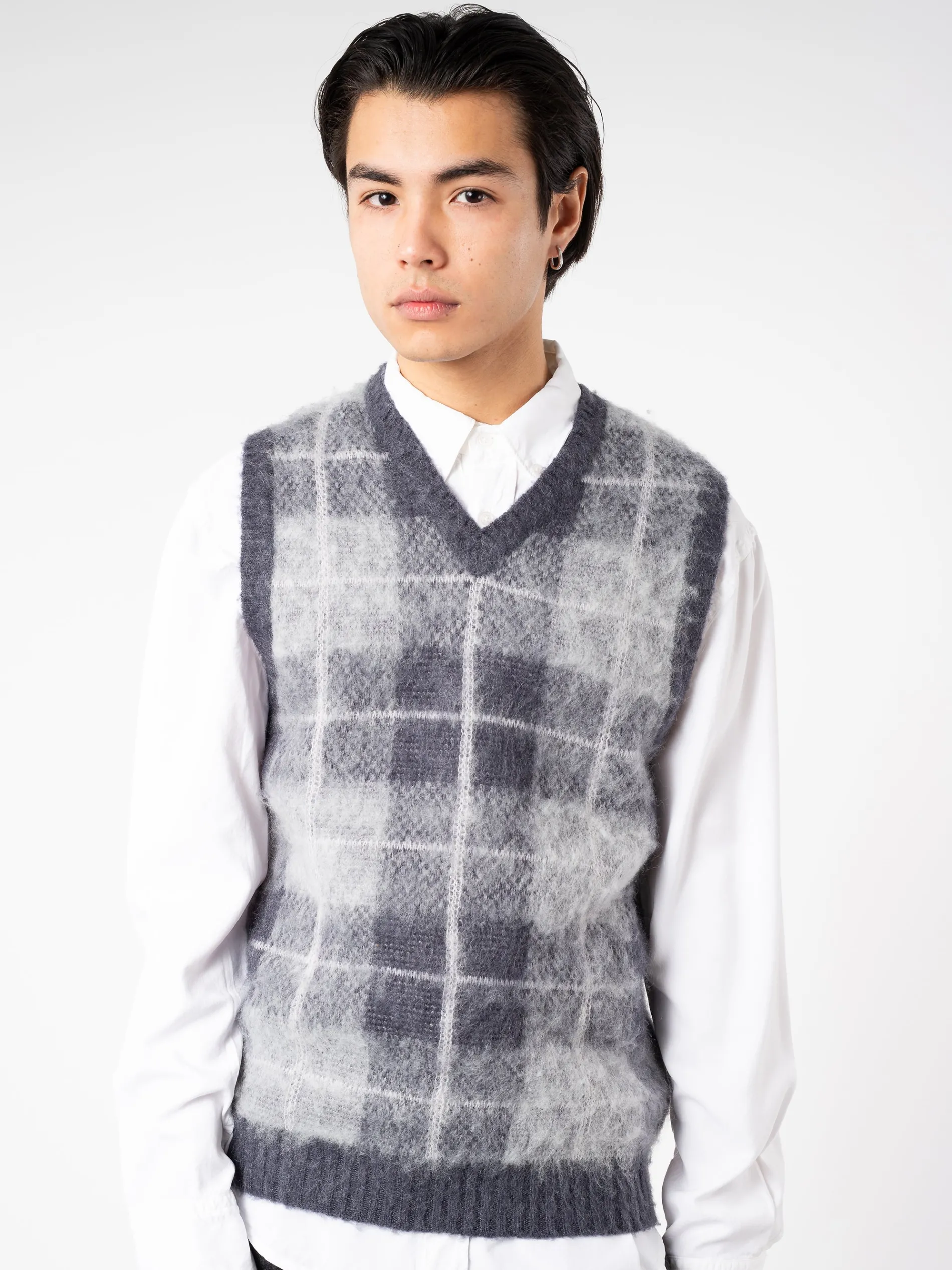 BEAMS PLUS knit vest inspired by vintage knit vests from the 1960s. A pullover style accented with a wide plaid pattern.