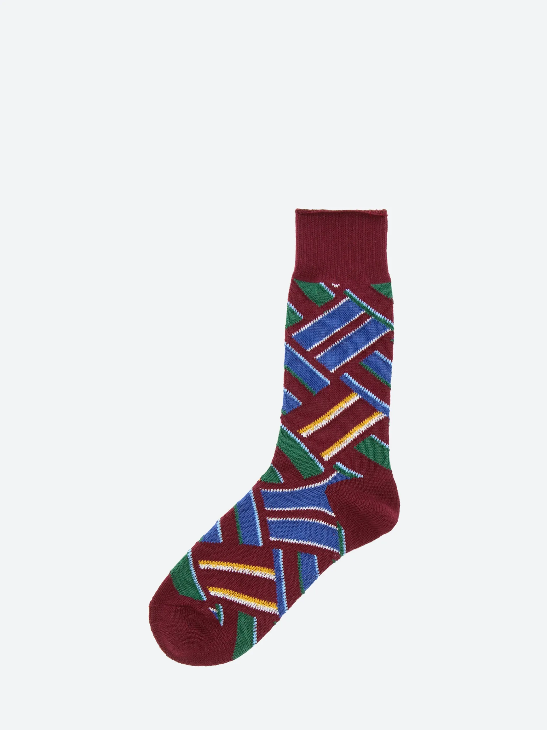 BEAMS PLUS socks featuring a design studded with regimental patterns. The classic yet playful design is perfect for accenting your style.