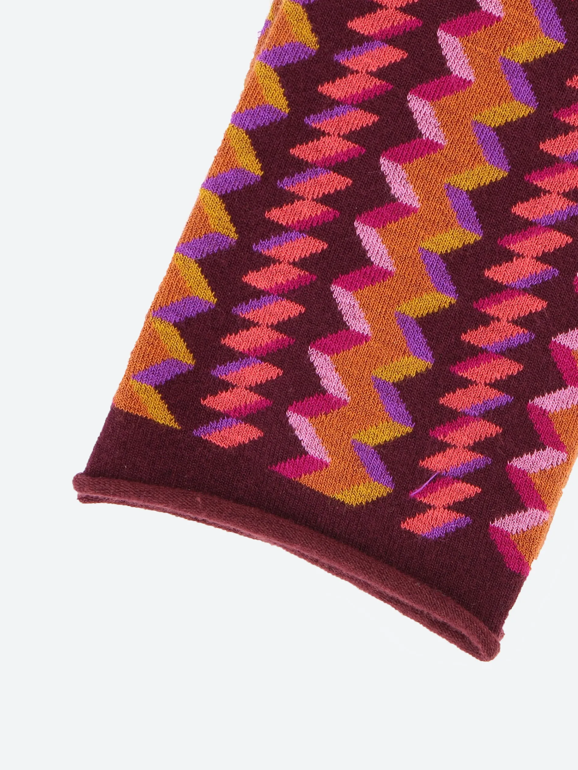 Lightweight cotton sock featuring a multi-color zigzag print with a non-binding roll top for the most comfortable fit.