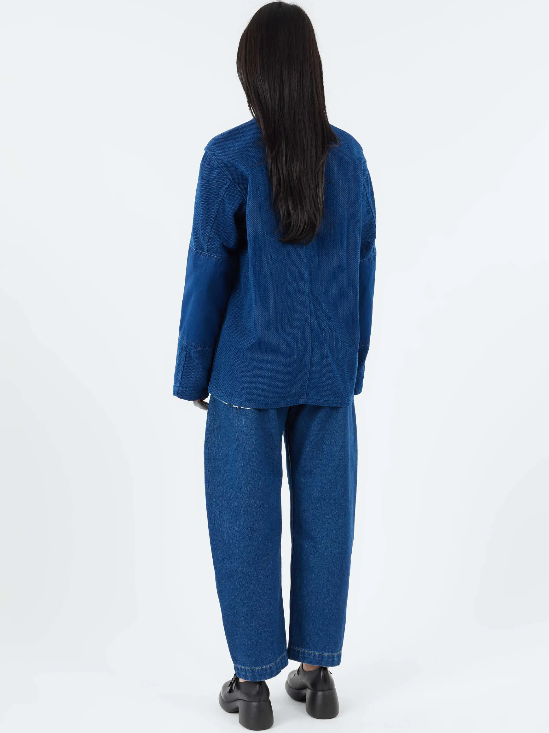 This product is made of indigo dyed material, so the color will change with repeated wearing and washing. Avoid wearing with white or light-colored items as the color may transfer. Please wash it separately as the color may bleed when washing.