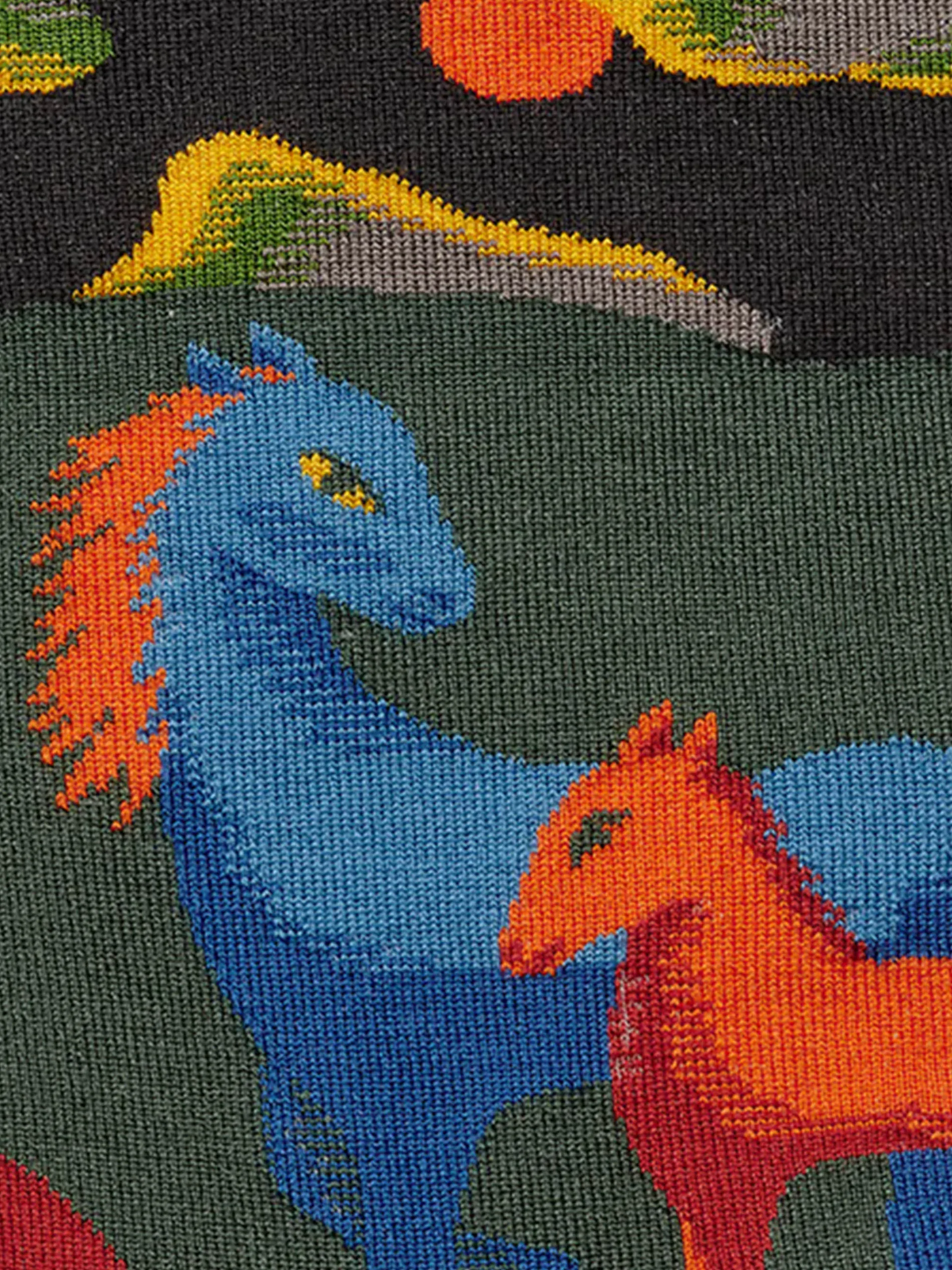 - Cobalt blue, new orange, and spruce green horses on pepper grey background