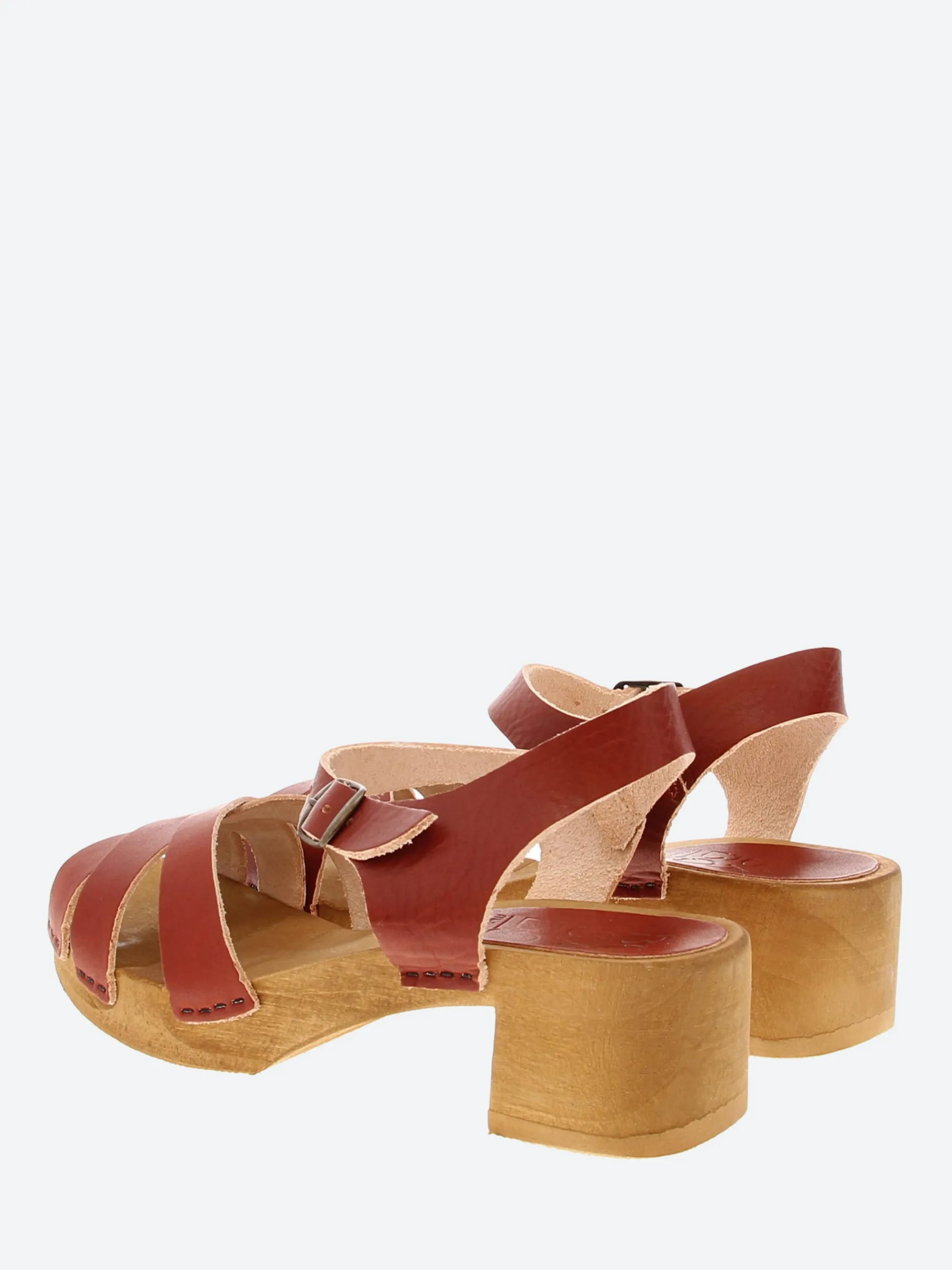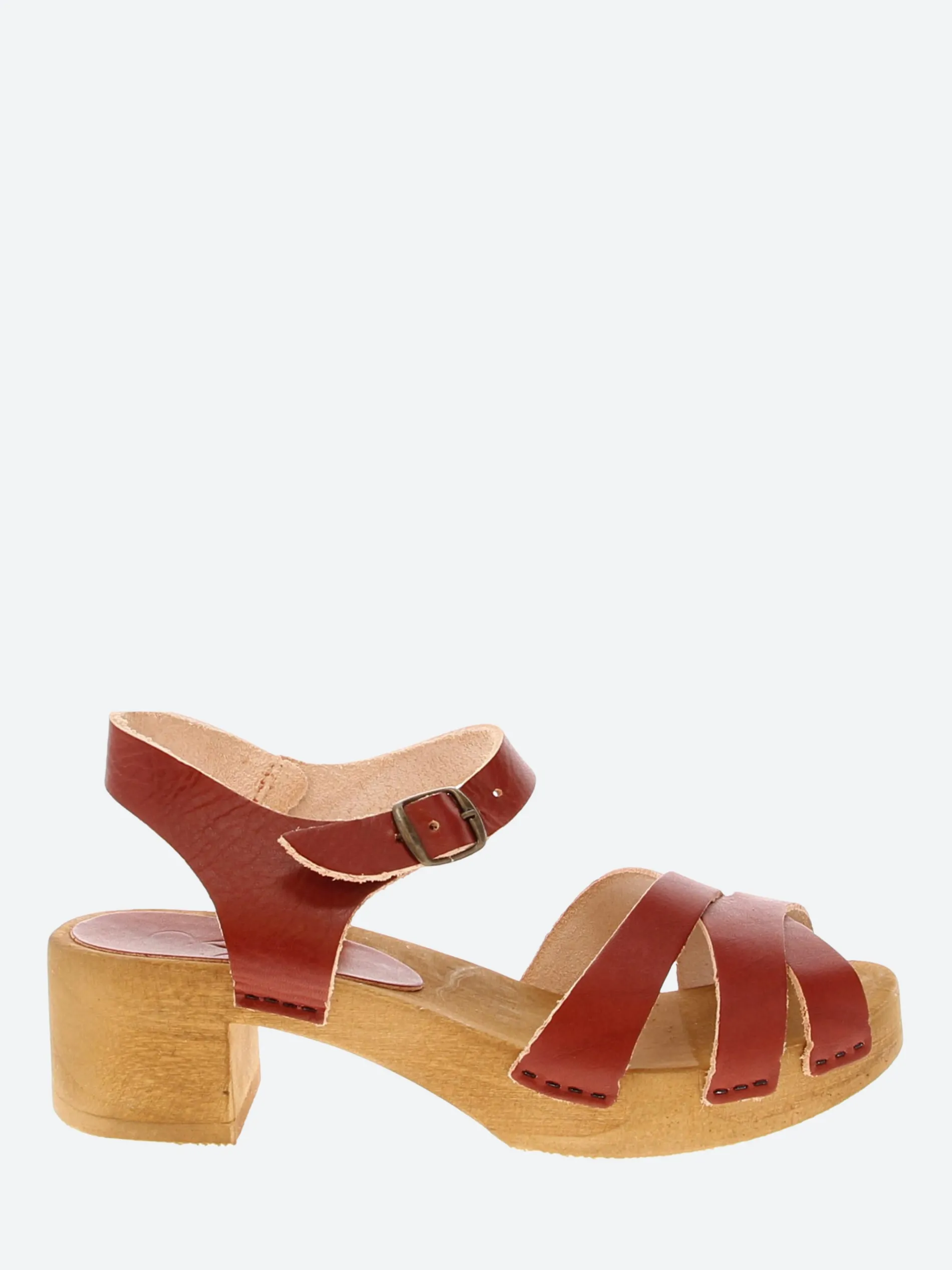 This elegant Bosabo sandal will accompany you to all your summer events. Its adjustable ankle strap and multi-strap weaving dress the foot, as the flexible wooden sole with an intermediate heel provides comfort while keeping a feminine look.