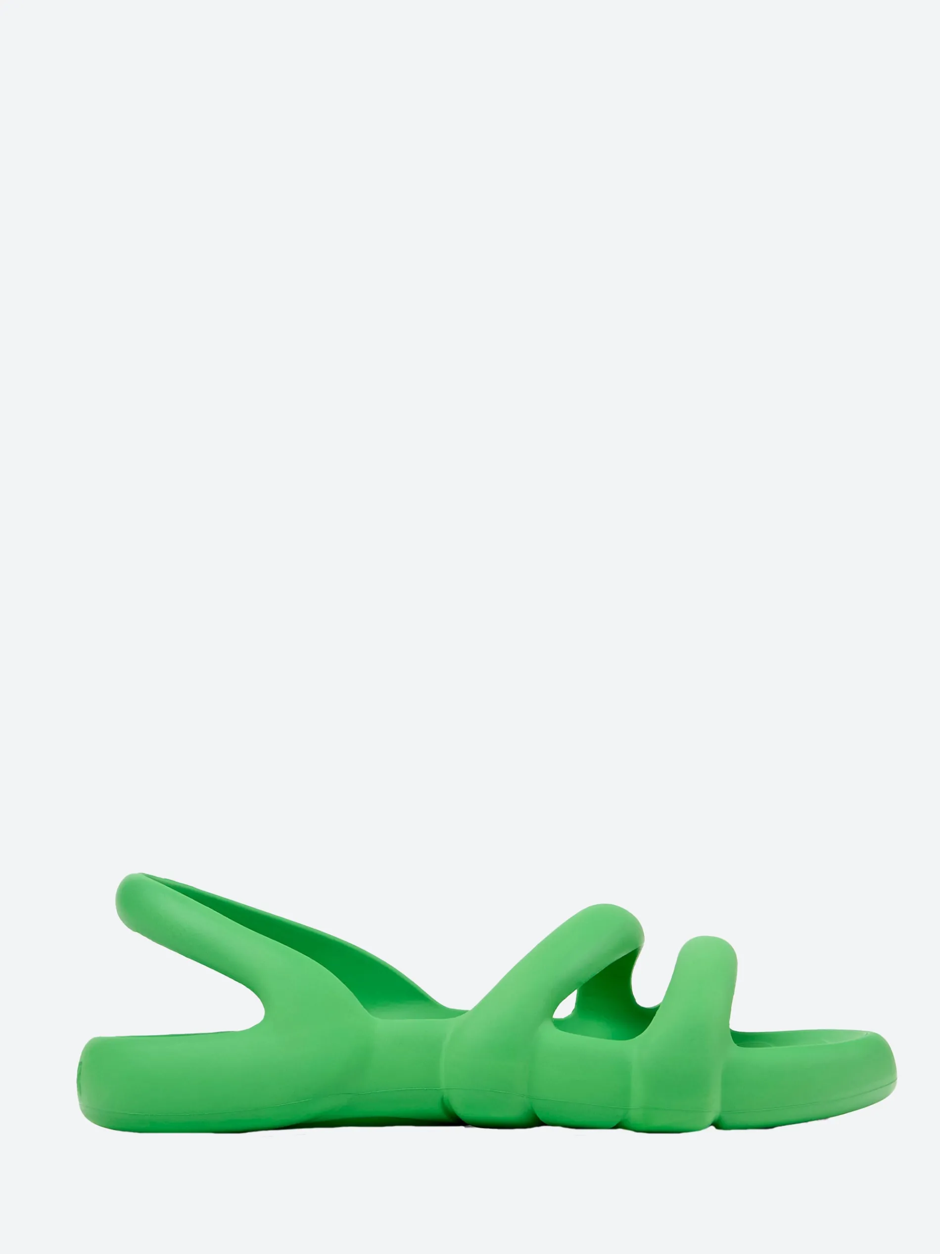 The flat version of the Kobarah heel is also made with fully recyclable materials and retains the voluptuousness, sinuosity and endless flux.