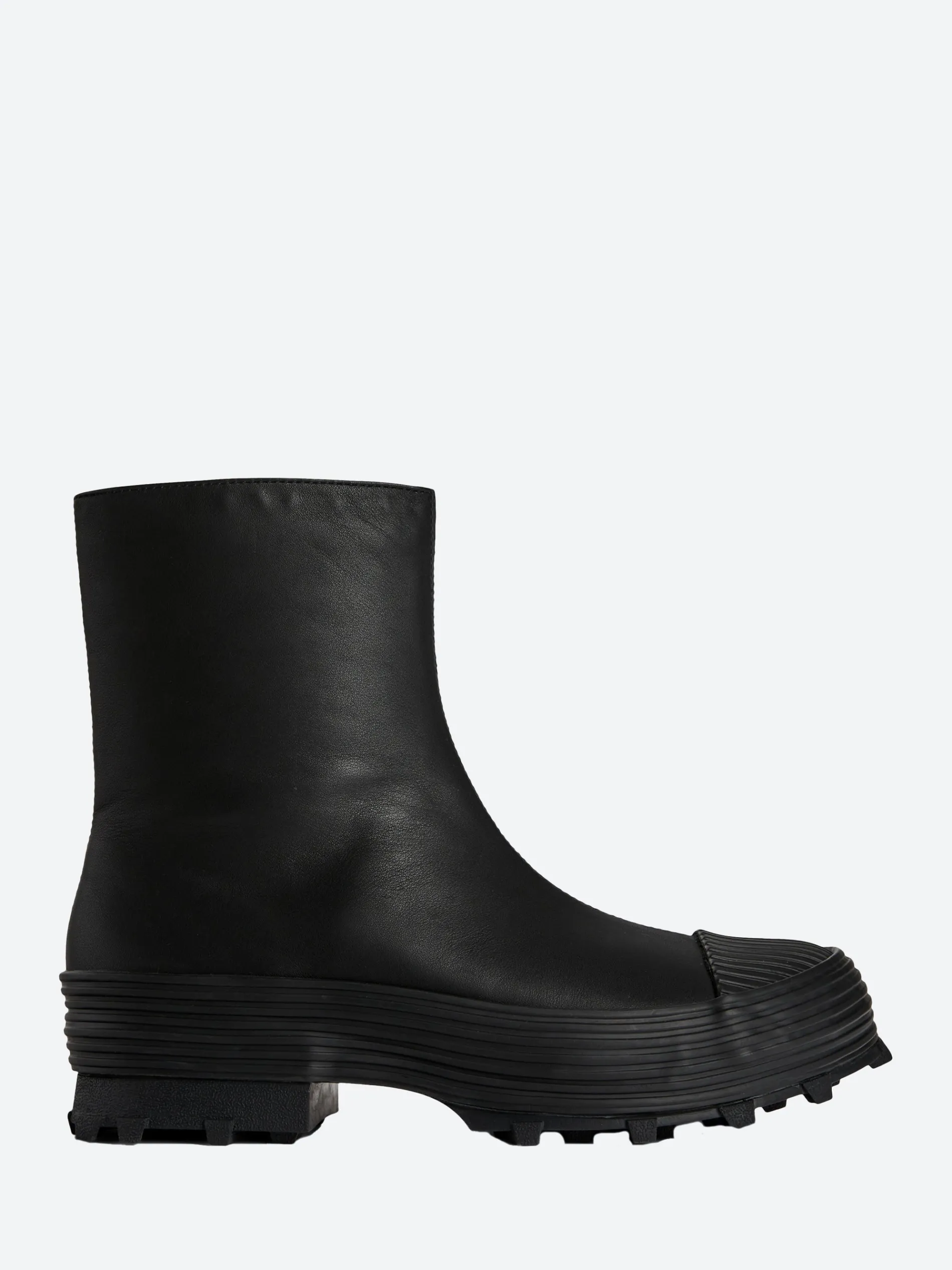 Vulcanized leather zip boots with toothed rubber outsoles and OrthoLite cushioned footbeds.