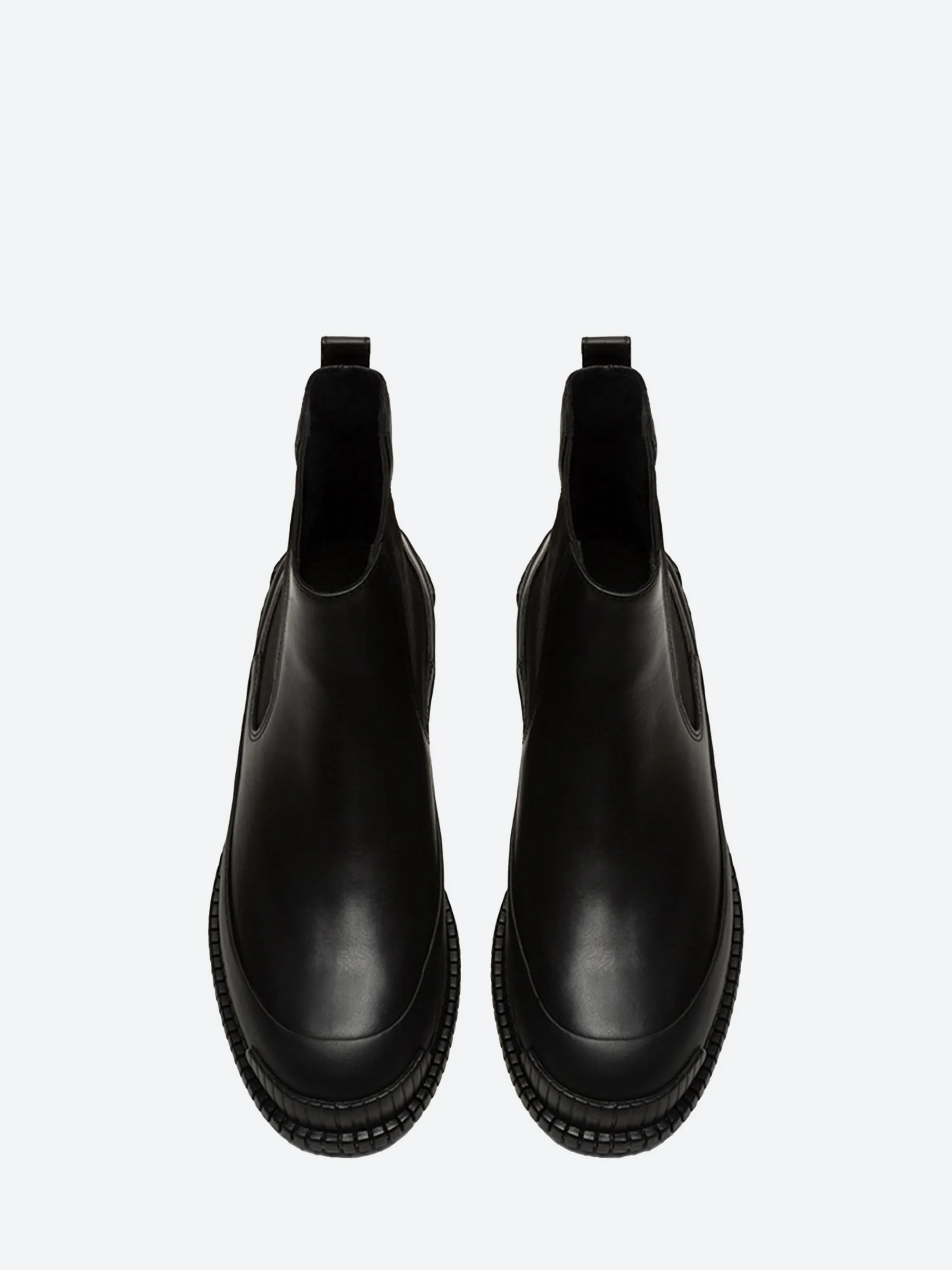 Camper Pix ankle boots are a twist on a classic style. With their signature two-tone design, the uppers are crafted from smooth leather, offering a more modern and urban look.