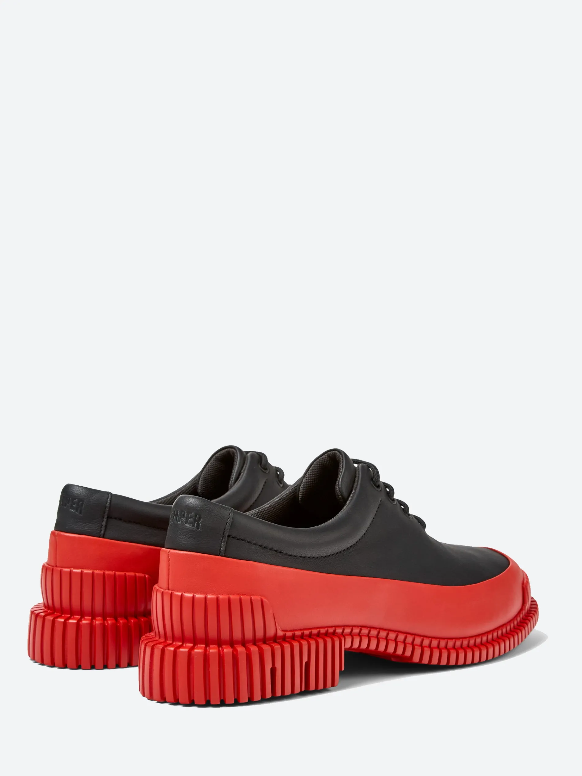 Camper Pix are playful in shape, with smooth leather and a sport grade outsole for superior flexibility. The iconic 3D outsoles beneath are incorporated with X-shaped torsion technology for enhanced stability.