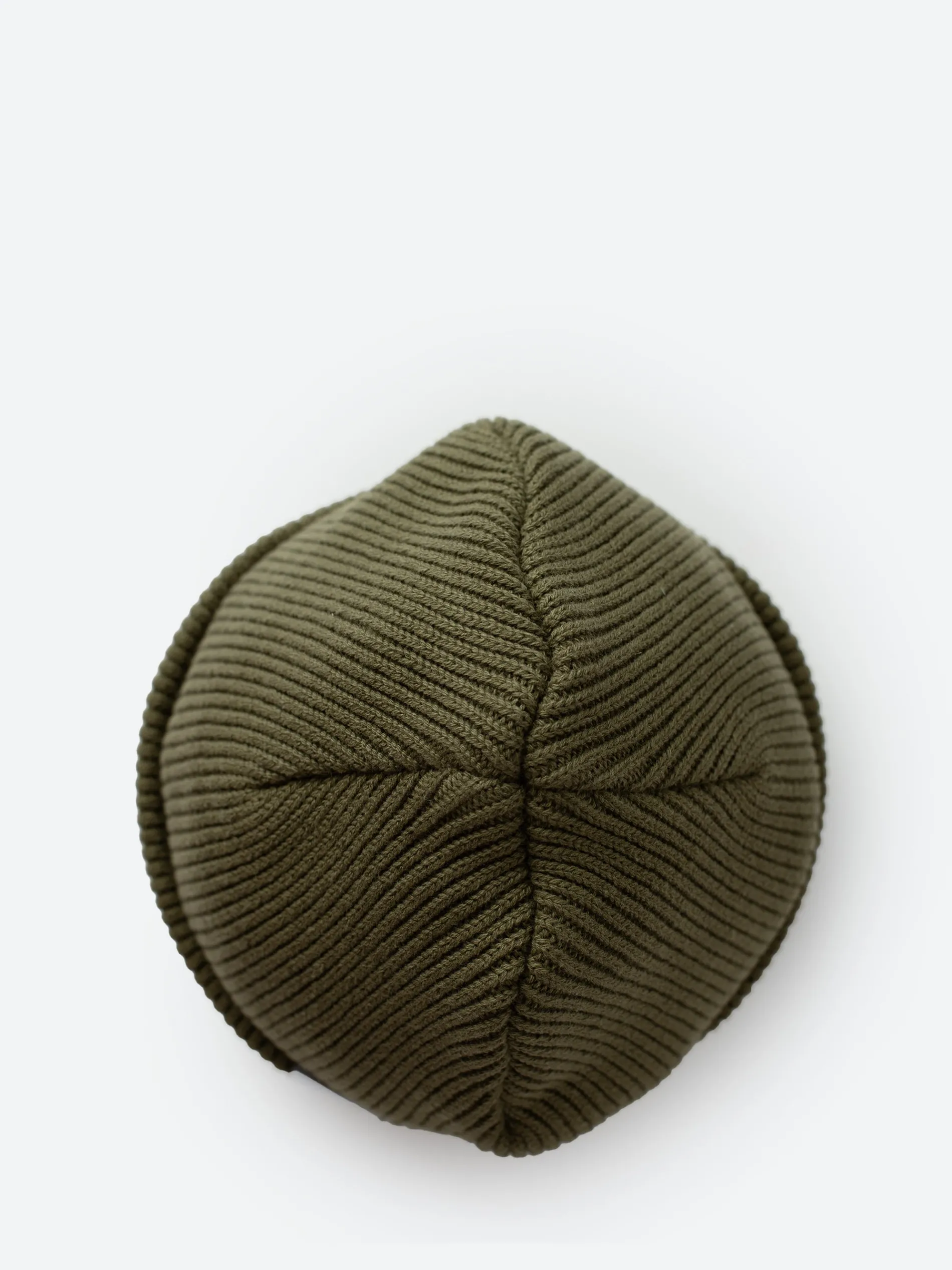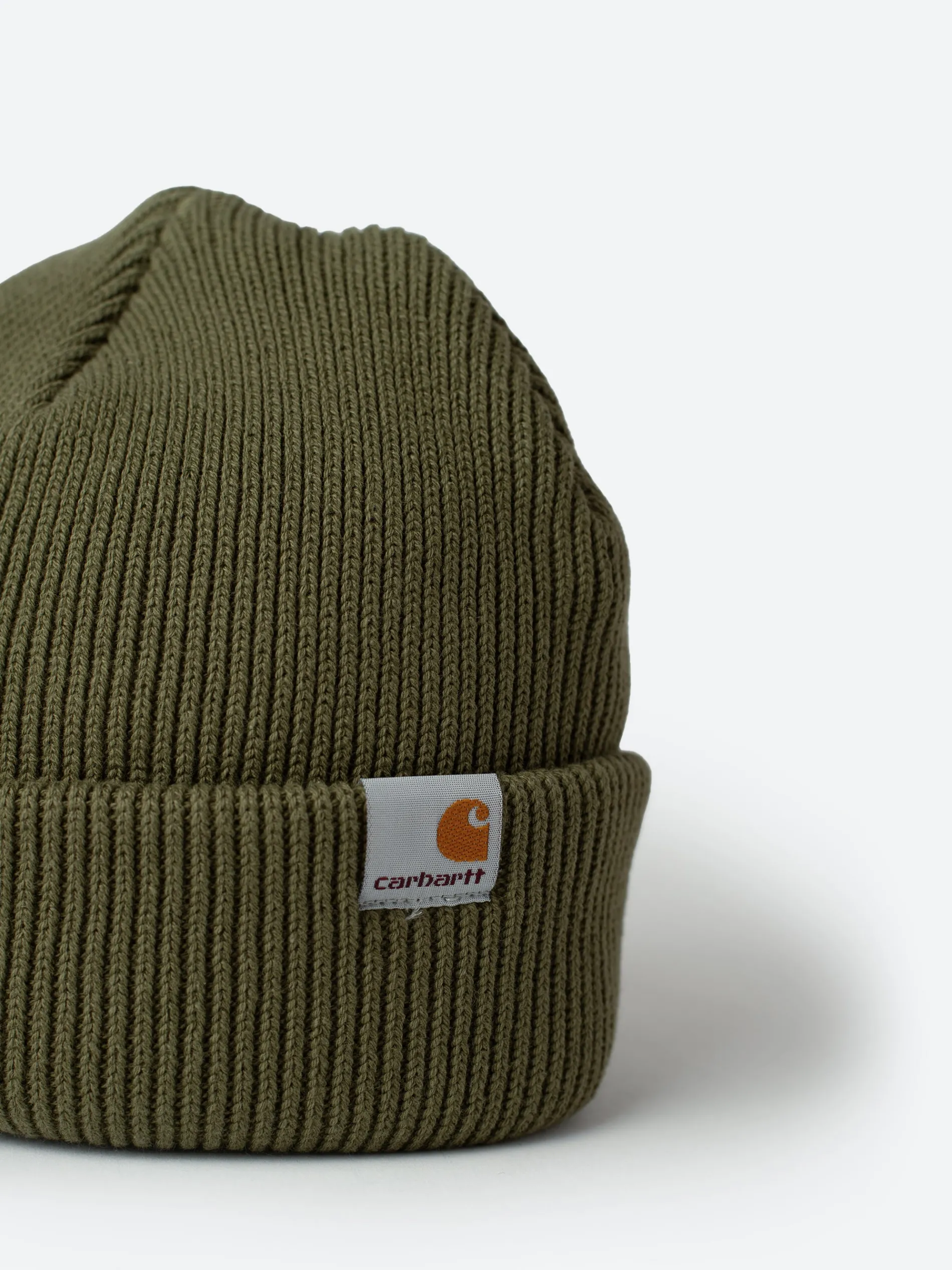 The Daxton Beanie is made from cotton yarn in a rib-knit construction. It is detailed with a small woven Square Label on the cuff.