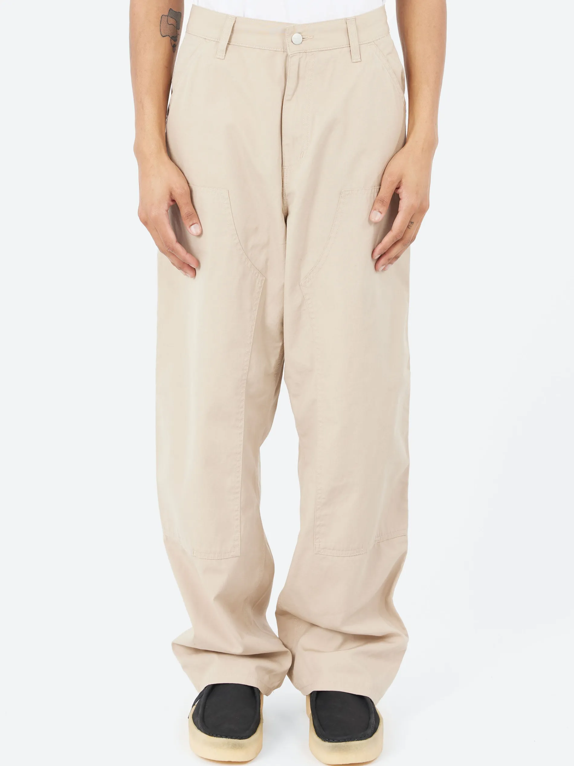The Double Knee Pant is made from midweight cotton poplin in a relaxed straight fit with a regular waist. Based on a classic work pant silhouette, the item has double-layer knees for extra reinforcement, as well as bartack stitching at vital stress points. Tool pockets and a hammer loop are further nods to the style’s utilitarian influences. A woven Square Label completes the design.