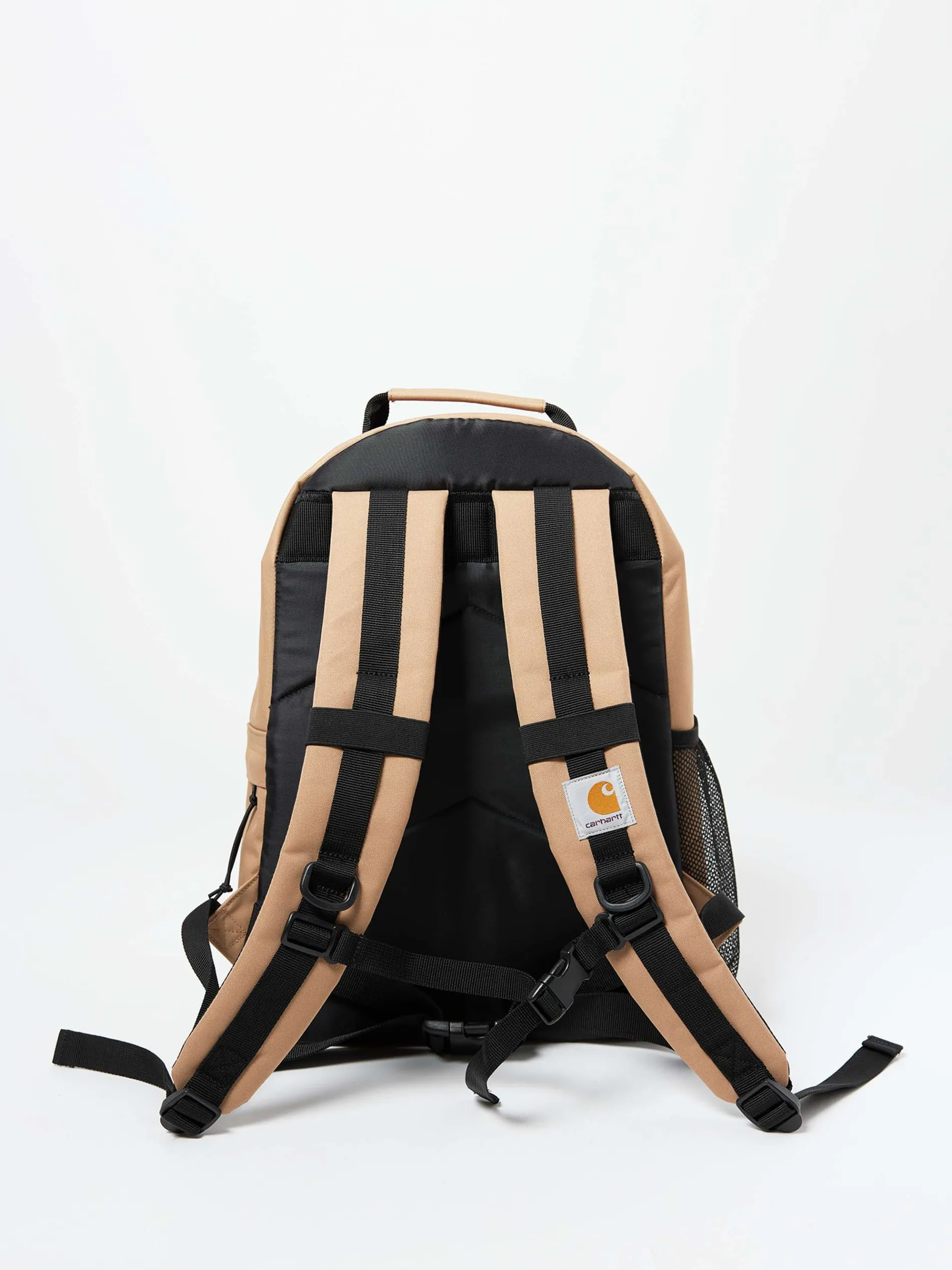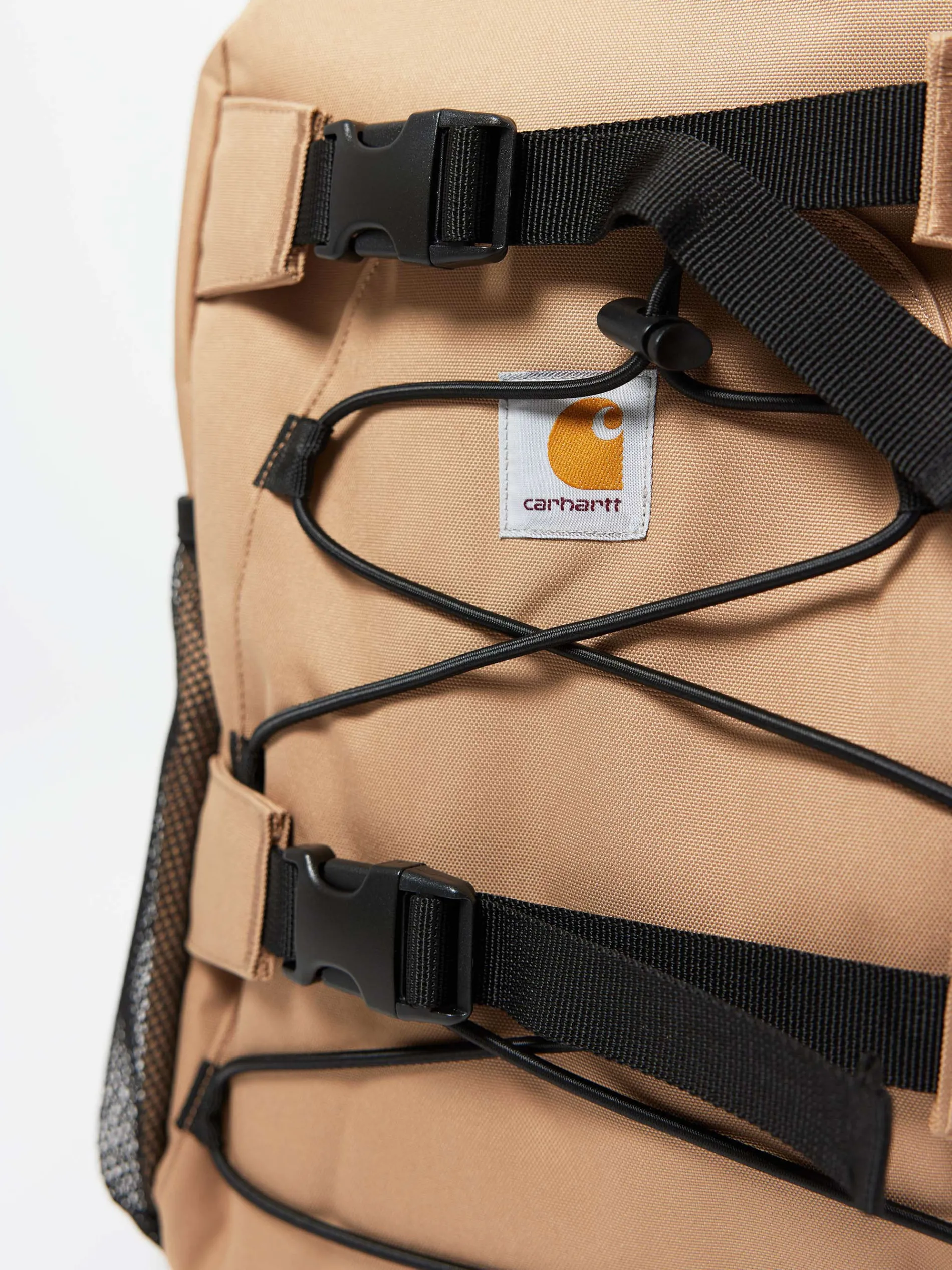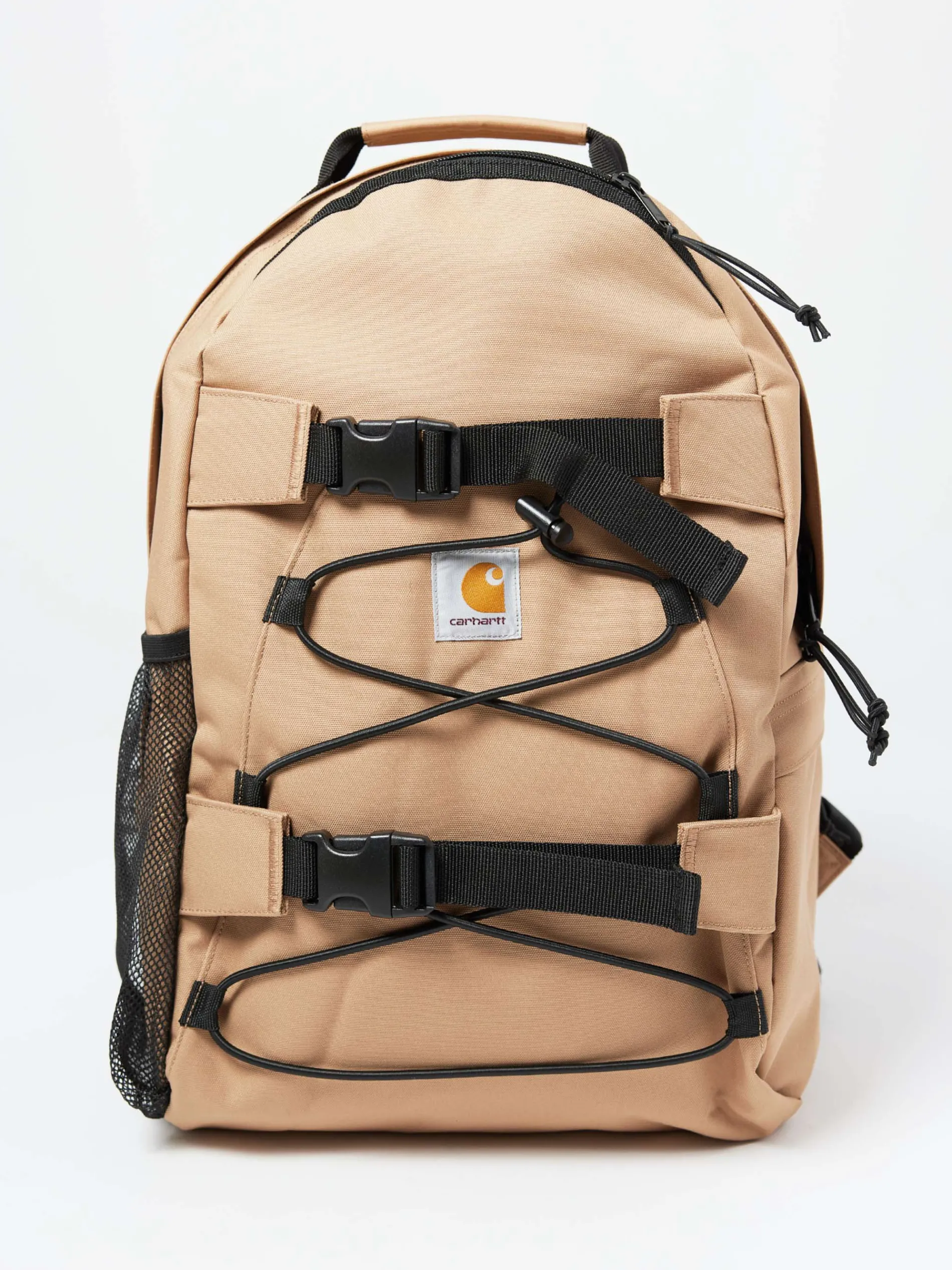 The Kickflip Backpack is a midweight, utilitarian backpack constructed from a water-repellent 11.2 oz polyester Duck Canvas. Features multiple pockets and board clips. Woven Carhartt WIP label on front.
