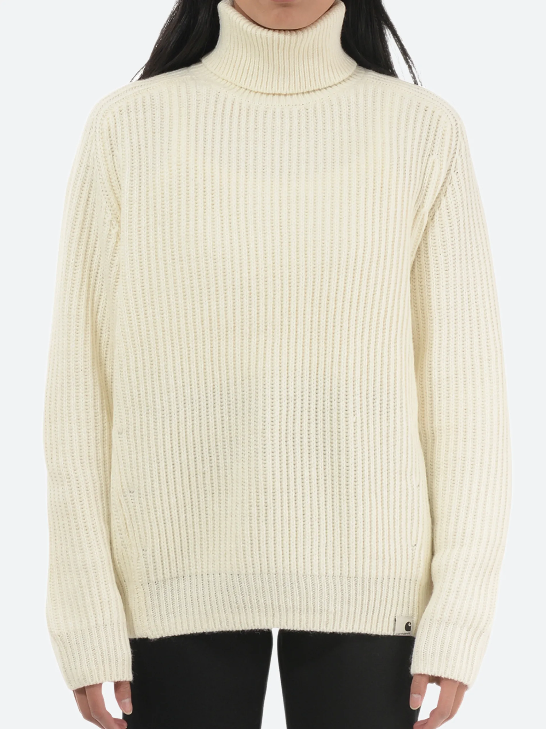 Carhartt WIP Women’s Mia Sweater is knit in a loose silhouette from a five-gauge blend of acrylic yarn, viscose and wool, resulting in style with a softly ribbed and textured feel.