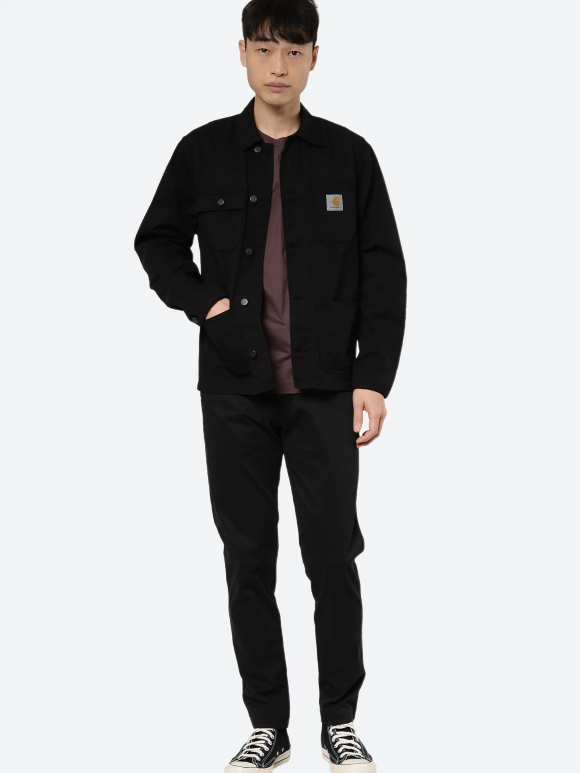 The Michigan Chore Coat is created from a midweight Newcomb cotton drill fabric. Contrast button and rivet detailing which draws from a classic workwear aesthetic.