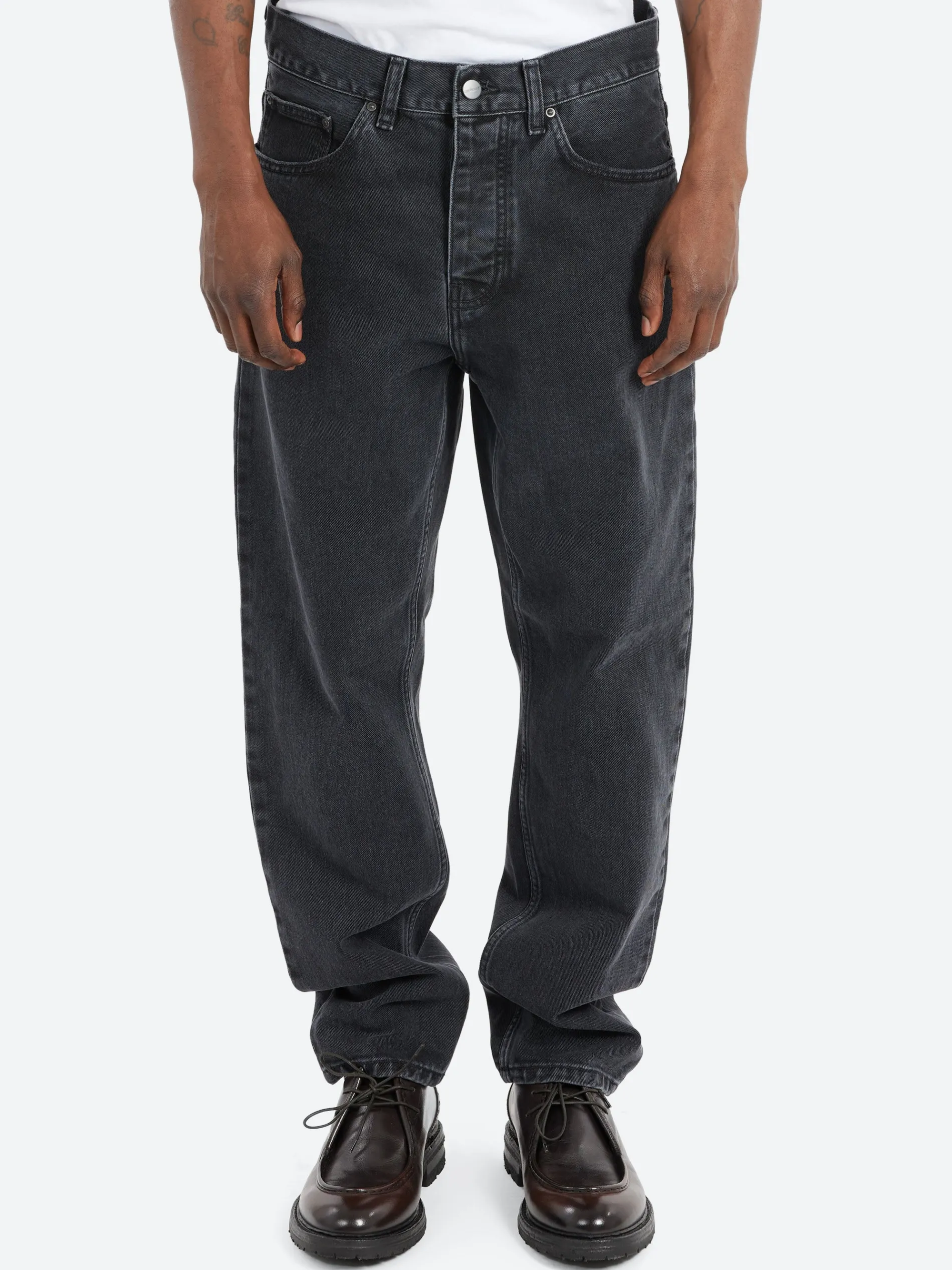 The Newel Pant is a classic five-pocket jean, executed in a contemporary relaxed tapered cut. Constructed here in ‘Maitland’ fabric, a heavyweight 13.5oz cotton denim. This denim has been washed for added comfort, but maintains its durable qualities.