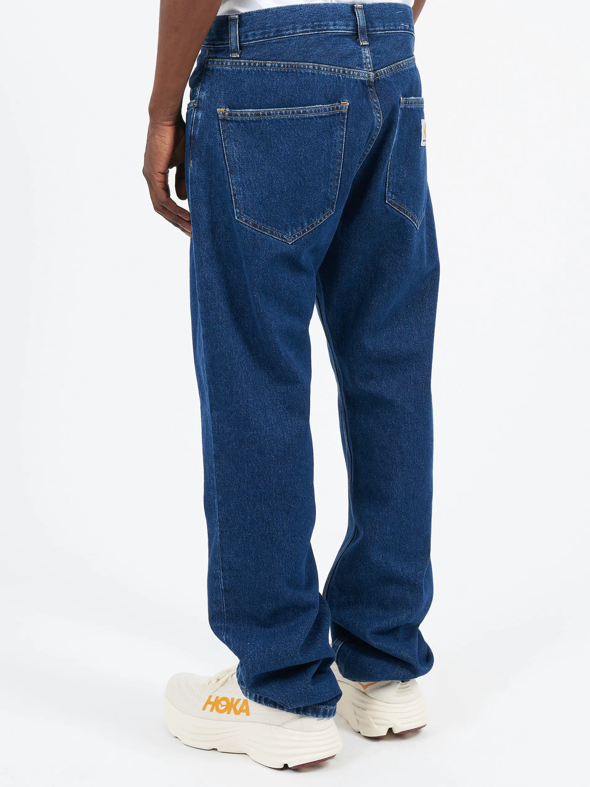 The Nolan Pant is a five-pocket item constructed from heavyweight cotton denim. It has a relaxed straight fit and a regular waist.