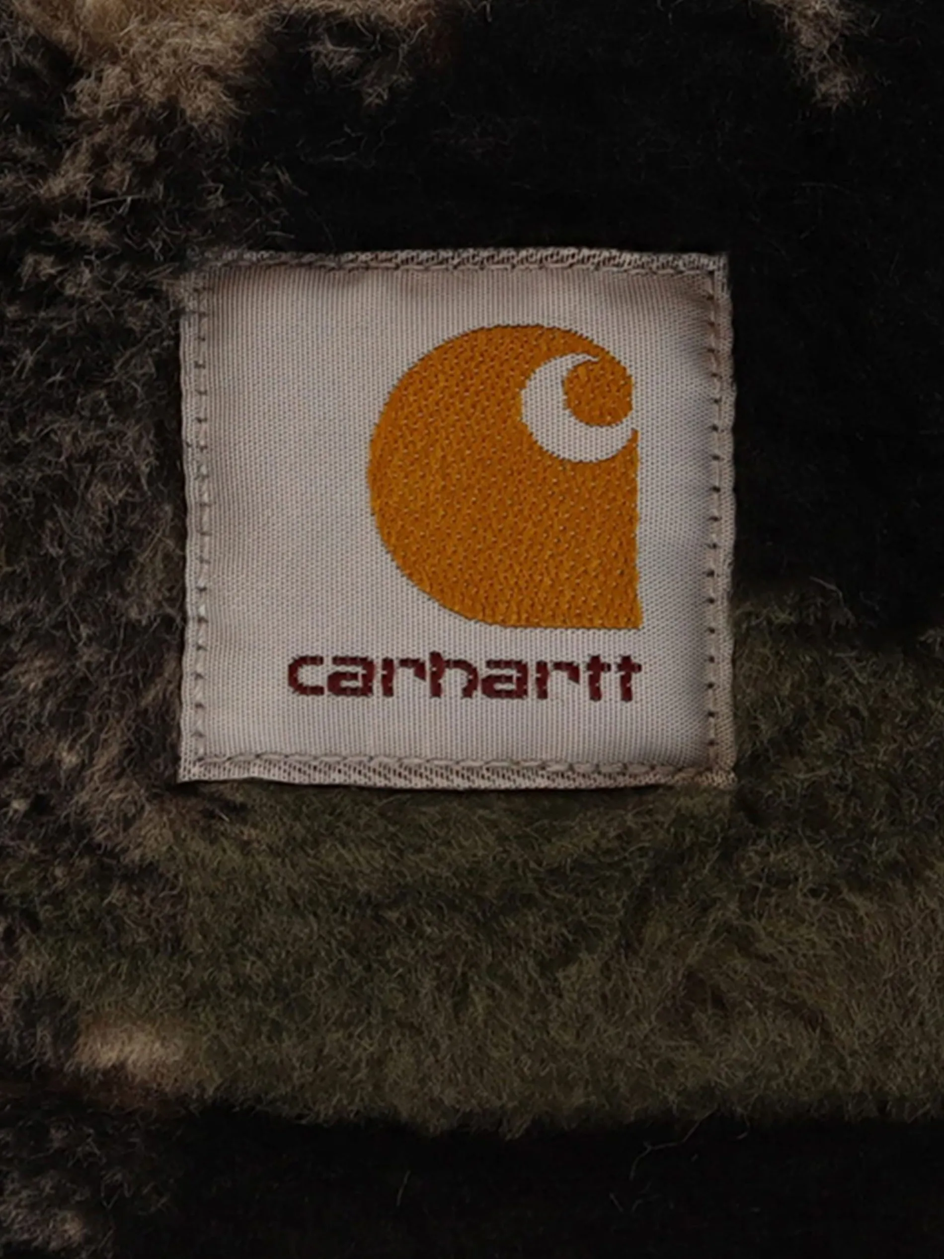 The Carhartt WIP Plains Bucket Hat is constructed from soft textured pile, composed of polyester and acrylic yarn in a woodland camouflage design.