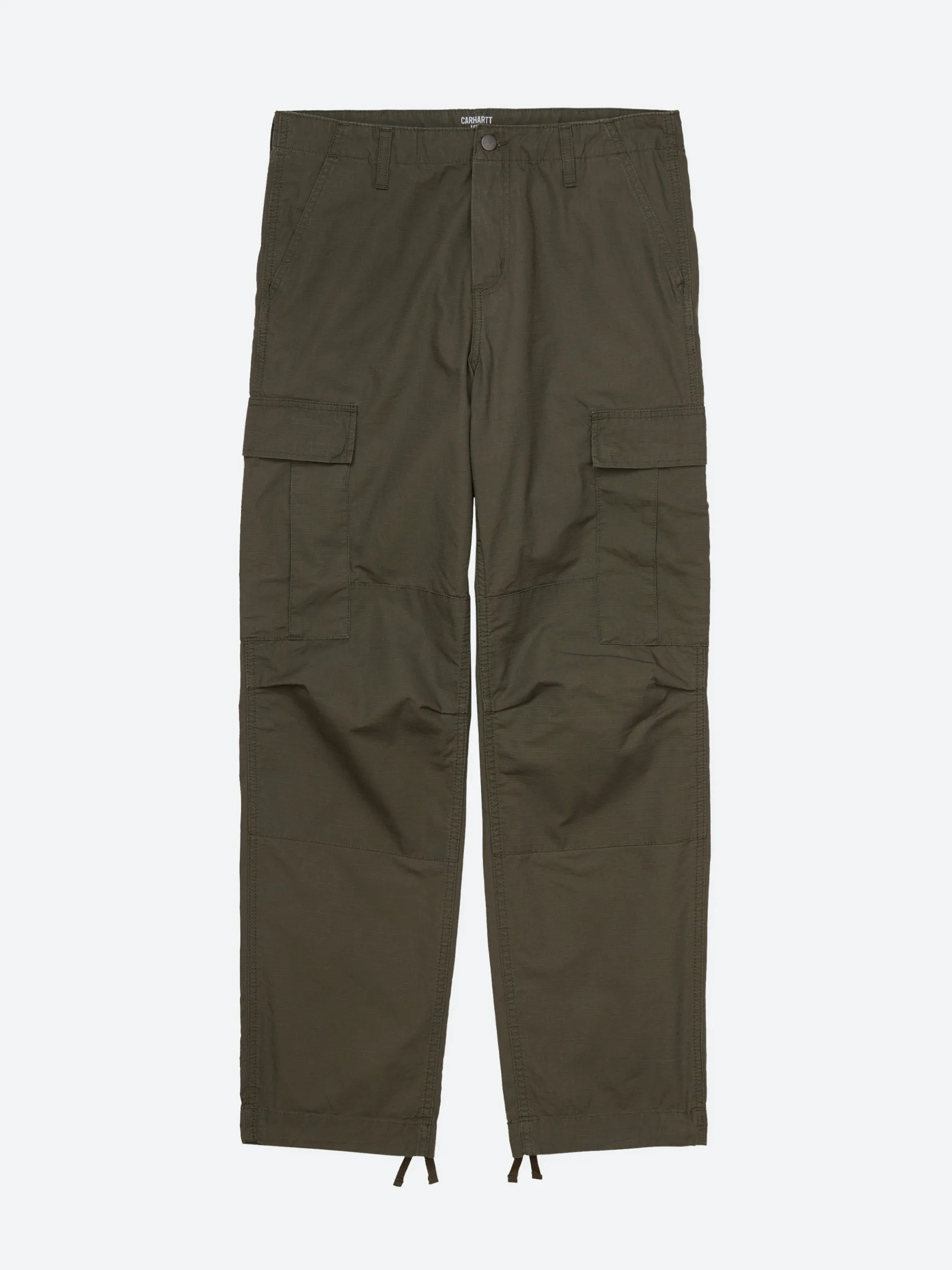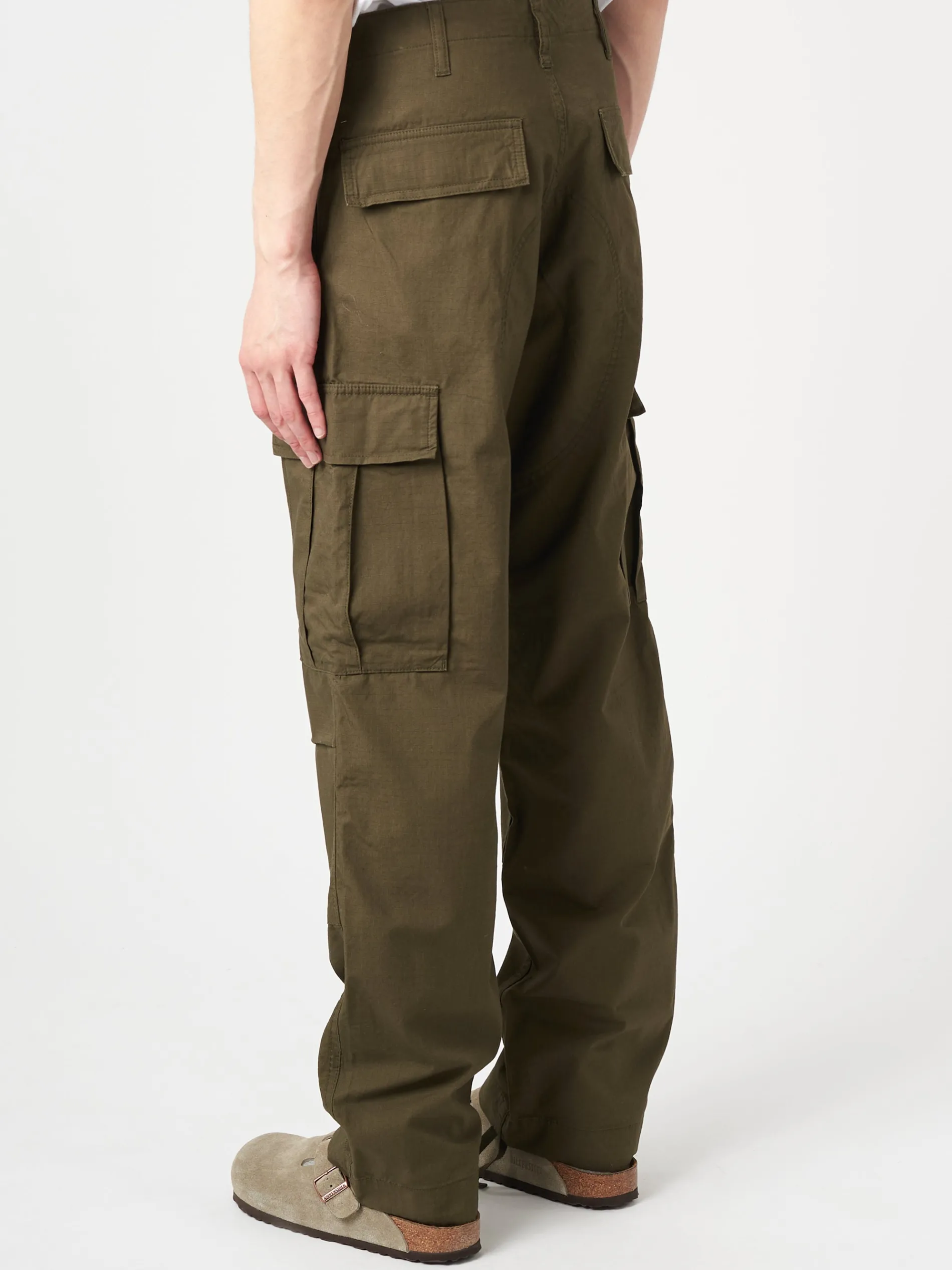The Carhartt WIP Regular Cargo Pant is constructed from a lightweight cotton ripstop fabric. This tough cotton has been rinsed for added comfort without sacrificing its durability.