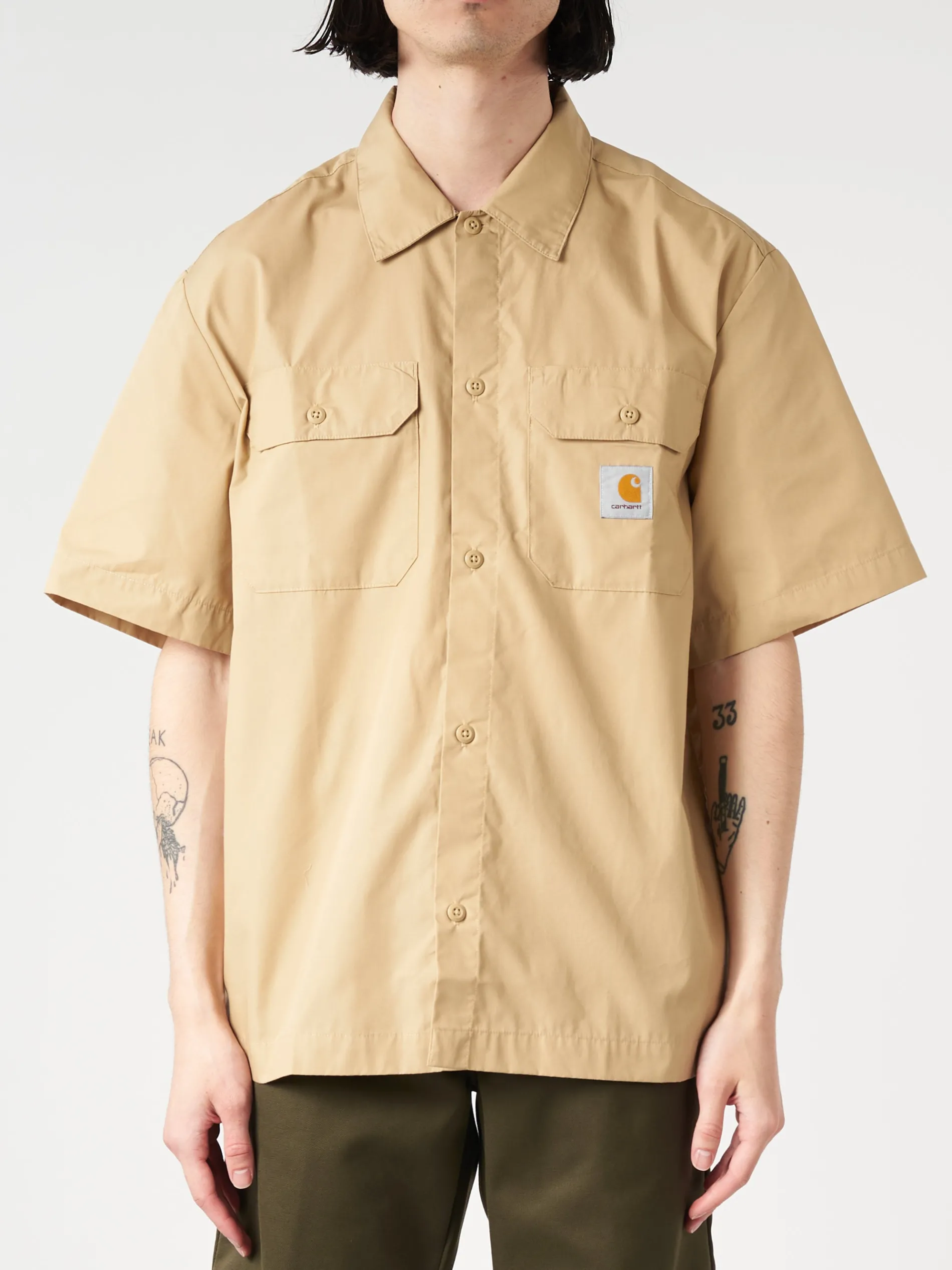 The S/S Craft Shirt is made from lightweight polycotton poplin and features a back pleat, which accentuates the item’s loose fit.