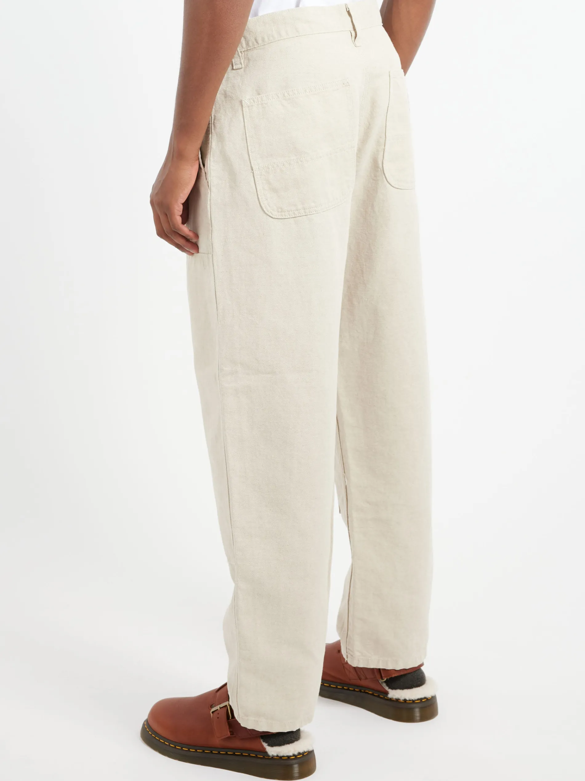 The Walter Double Knee Pant is constructed from a blend of cotton and linen in a relaxed tapered fit. The item also has double-layer knees for extra reinforcement, as well as utilitarian metal rivets, tool pockets, and a hammer loop.