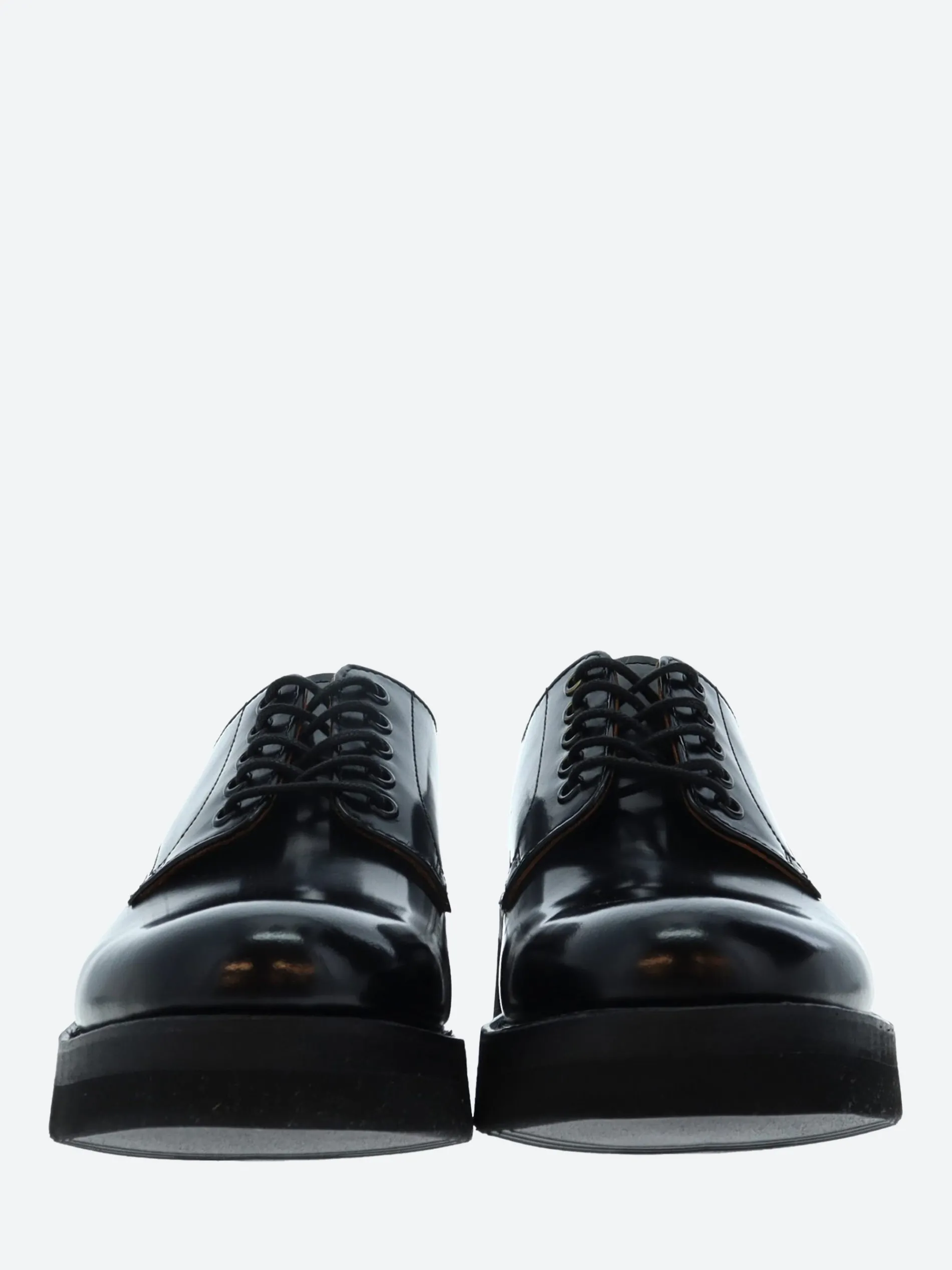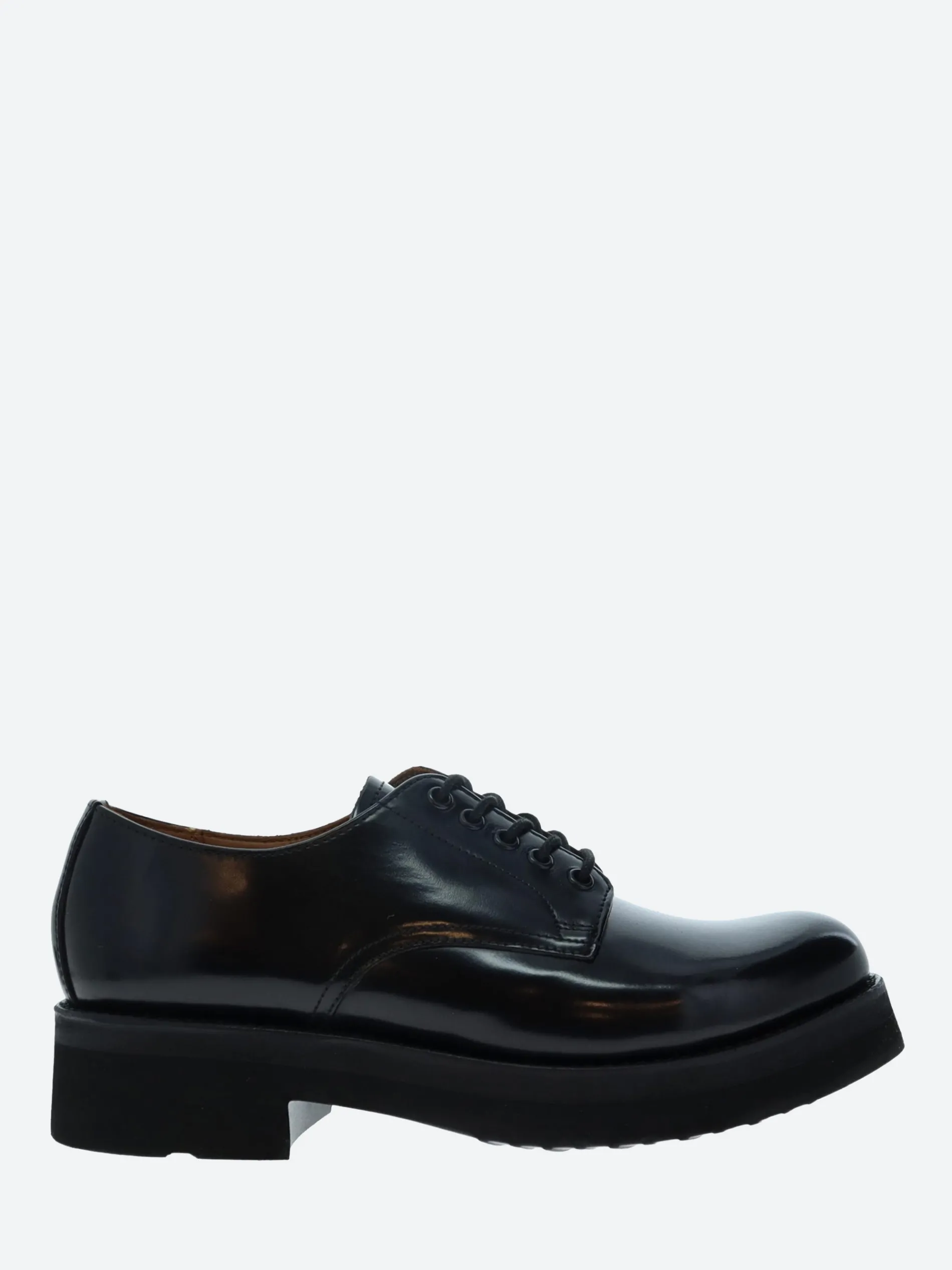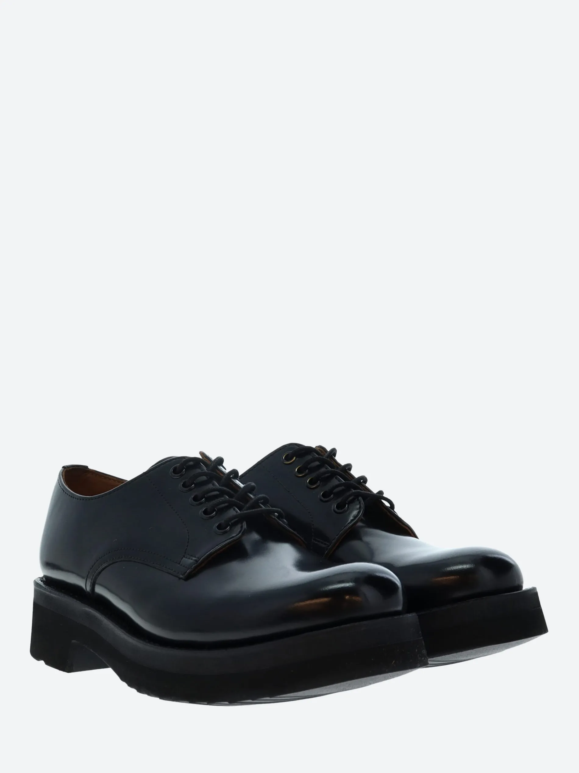 Grenson Carol is a super simple derby shoe made from polished black hi shine leather.