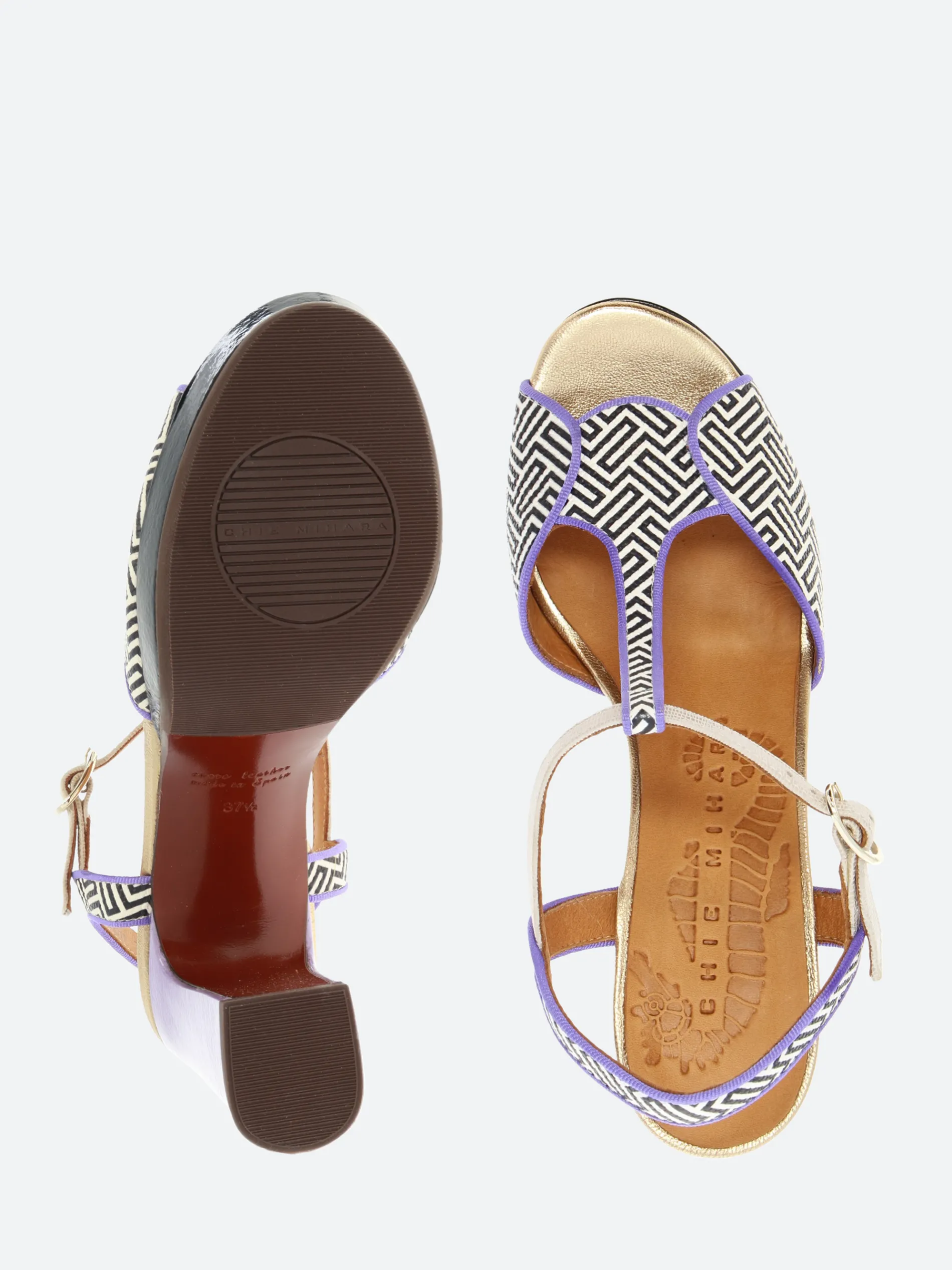 Bold and contemporary, the Keduni sandal features a striking geometric leather upper with a classic T-bar design. A 70mm block heel adds height without compromising comfort, while the adjustable buckle ensures a secure fit. Handcrafted in Spain, this piece is a perfect blend of modern flair and timeless craftsmanship.