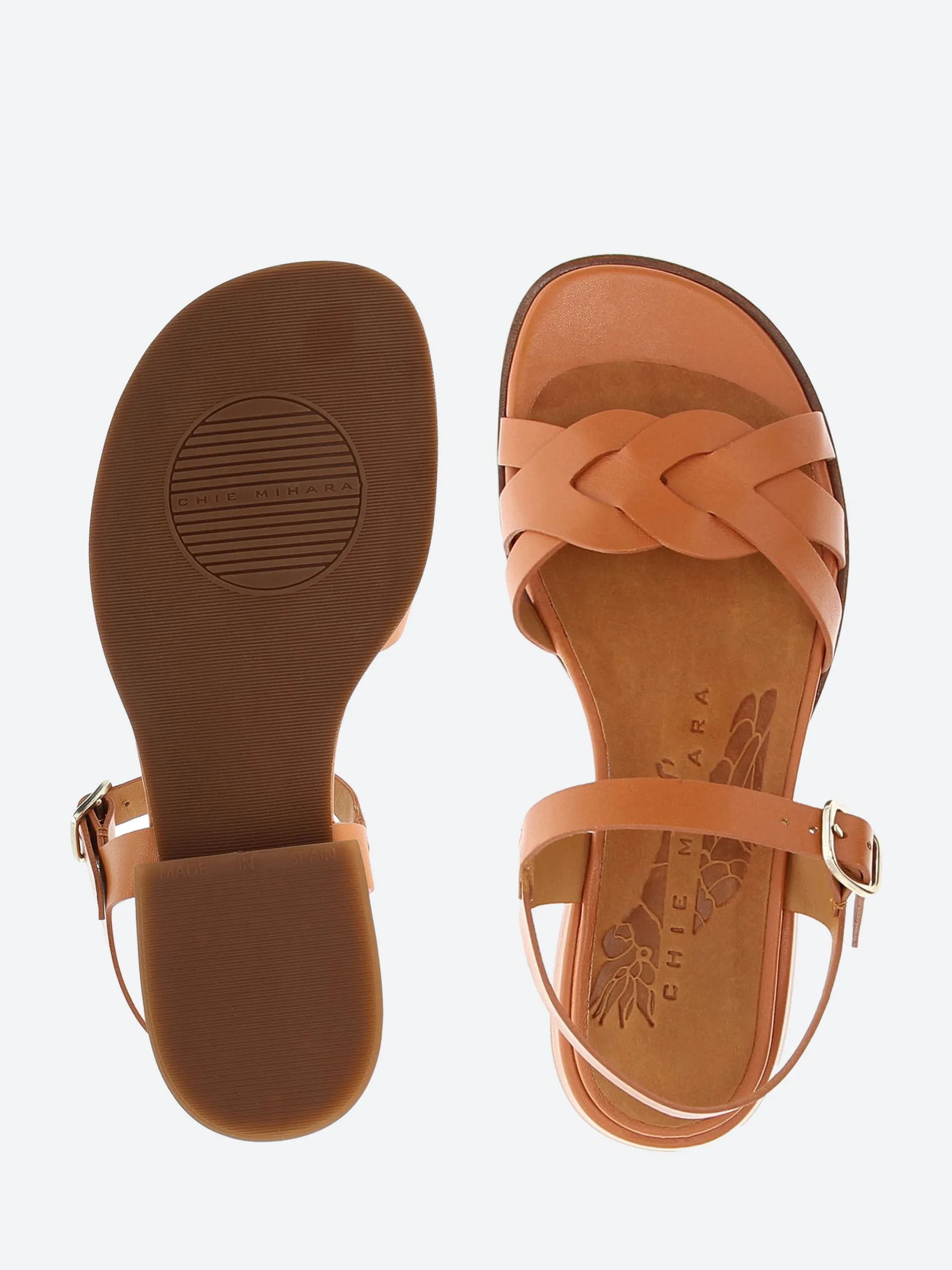 Chie Mihara’s Wagau open toe woven sandal, crafted from soft leather with a cross-ankle buckle closure strap.