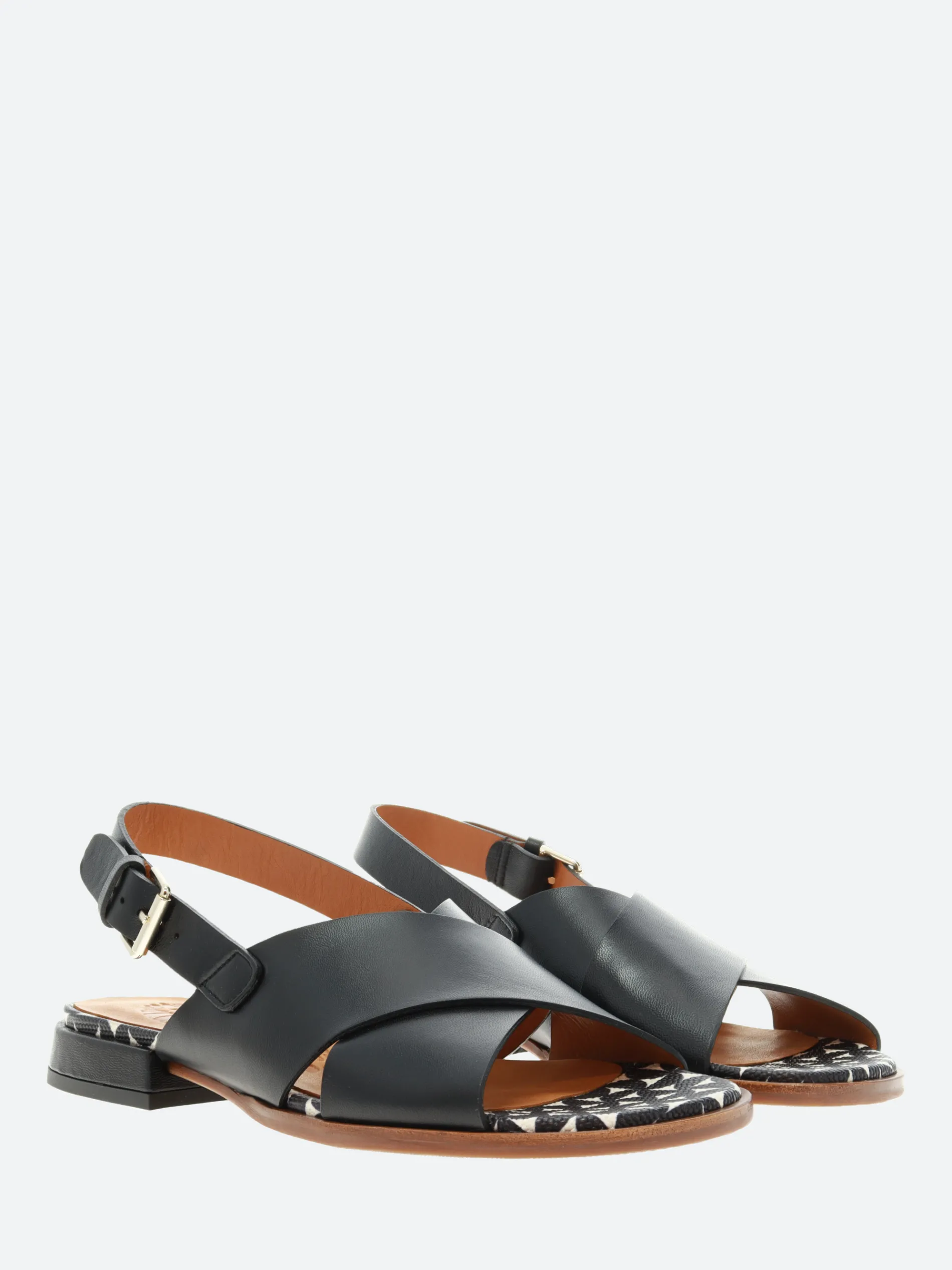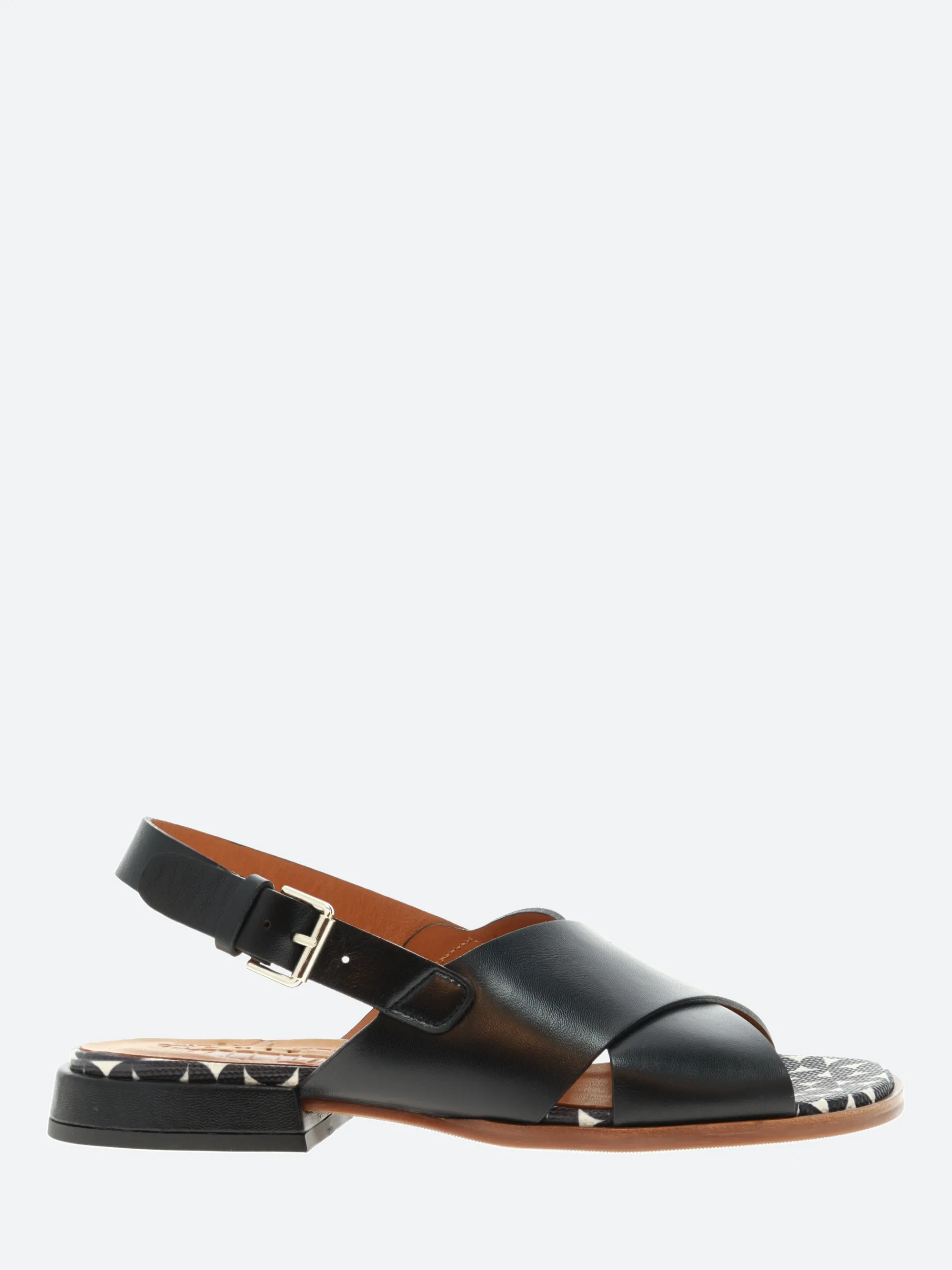 Chie Mihara’s Wanter open toe cross-strap sandal, crafted from soft leather with an ankle buckle closure strap.
