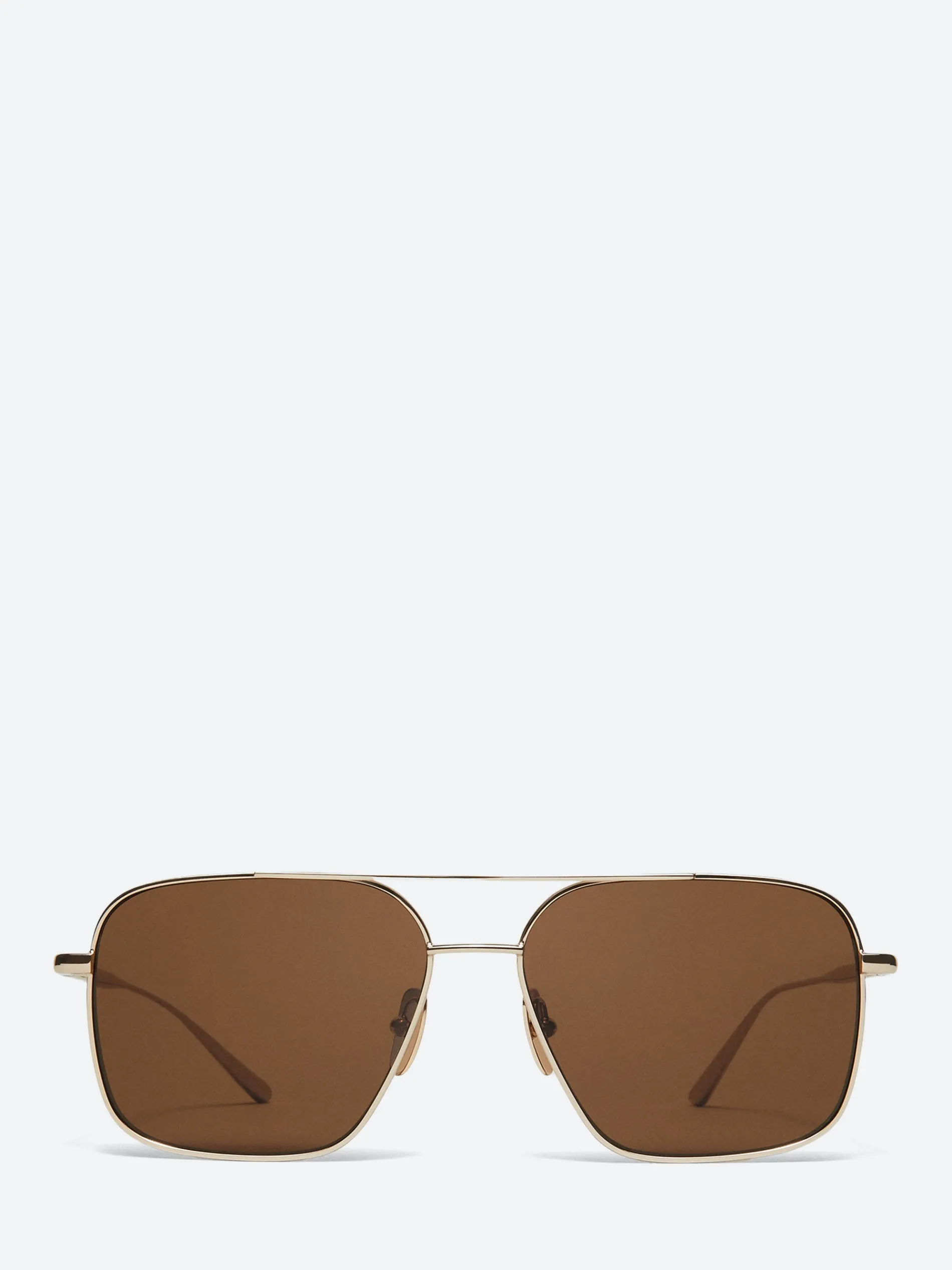 Bold minimalism defines Aviator, a contemporary take on the classic rectangular silhouette. The lightweight frame is handcrafted in shiny stainless steel with slim cylinder-shaped temples and finished with a brow bar.