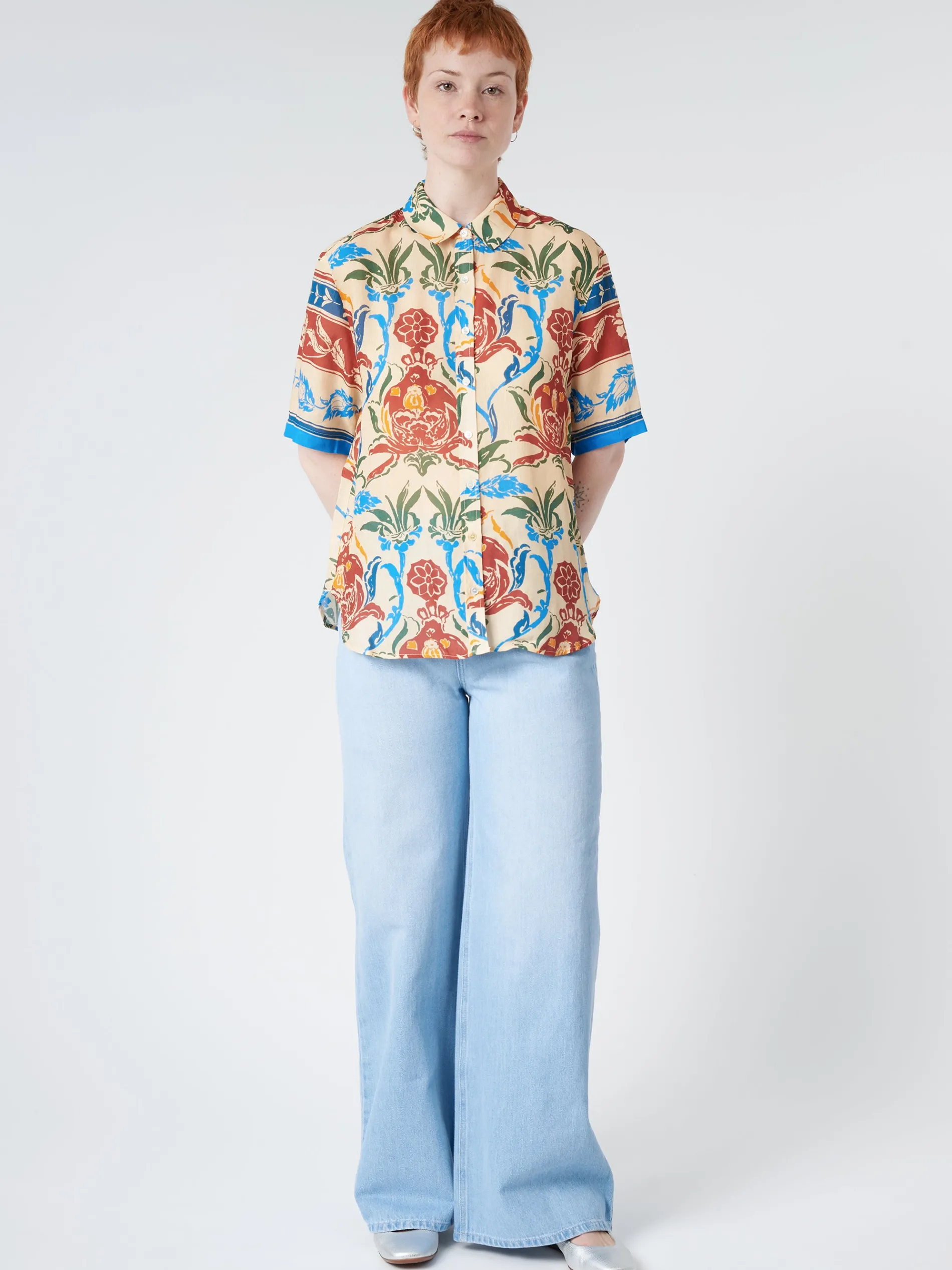 Short sleeve button up shirt with a seasonal floral print, made from a light, airy linen-viscose.