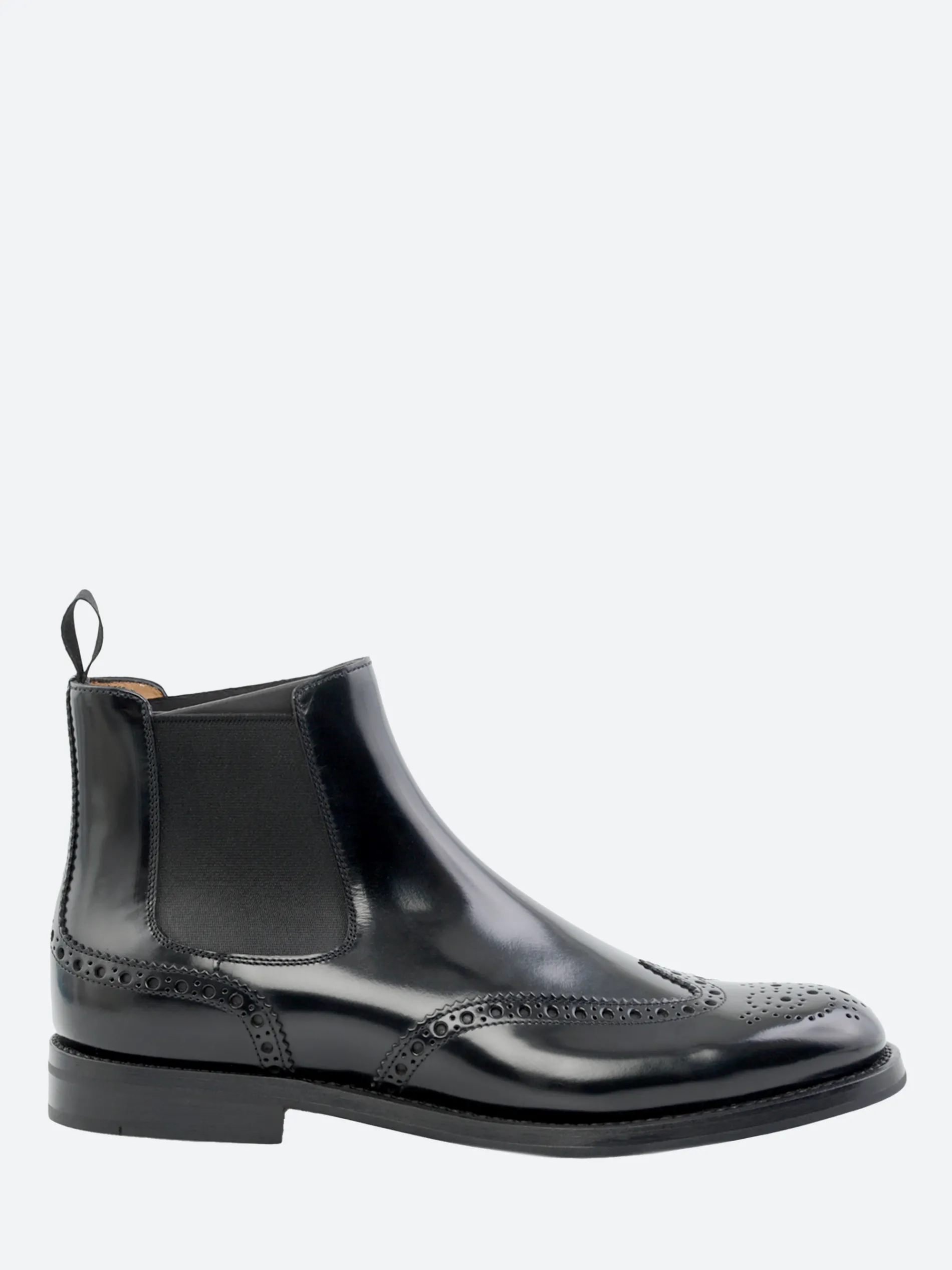 The iconic Chelsea boot maintains its high rank as an essential city shoe. The Ketsby combines this famous silhouette with traditional brogue perforations, adding an extra layer of sophistication to its sleek contours.