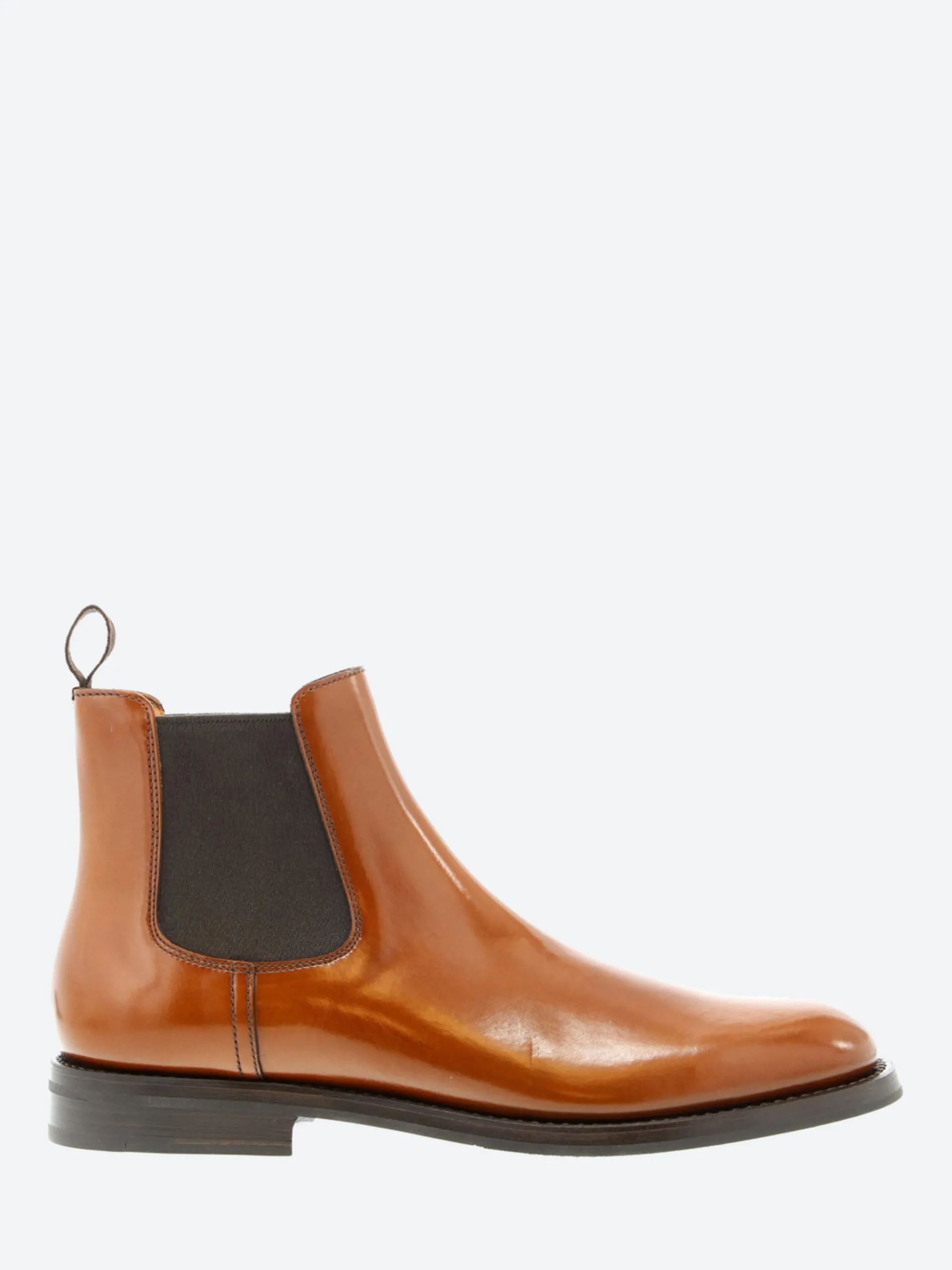 Church’s Monmouth is an ultra-classic Chelsea ankle boot with a rounded toe, low heel and a stitched leather and rubber sole. The boot is made of a high-quality matte calf leather.