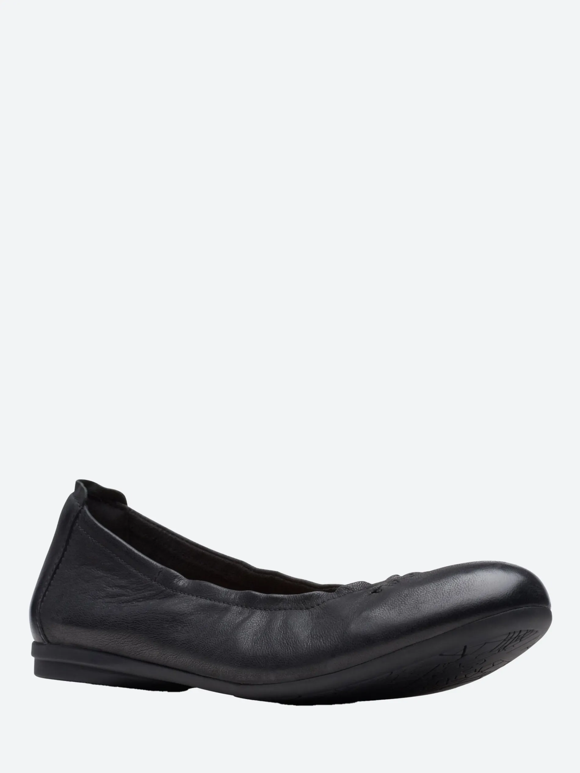 Clarks lightweight ballerina flat with a soft leather design that showcases intricate pleated details. It’s so easy to style too.