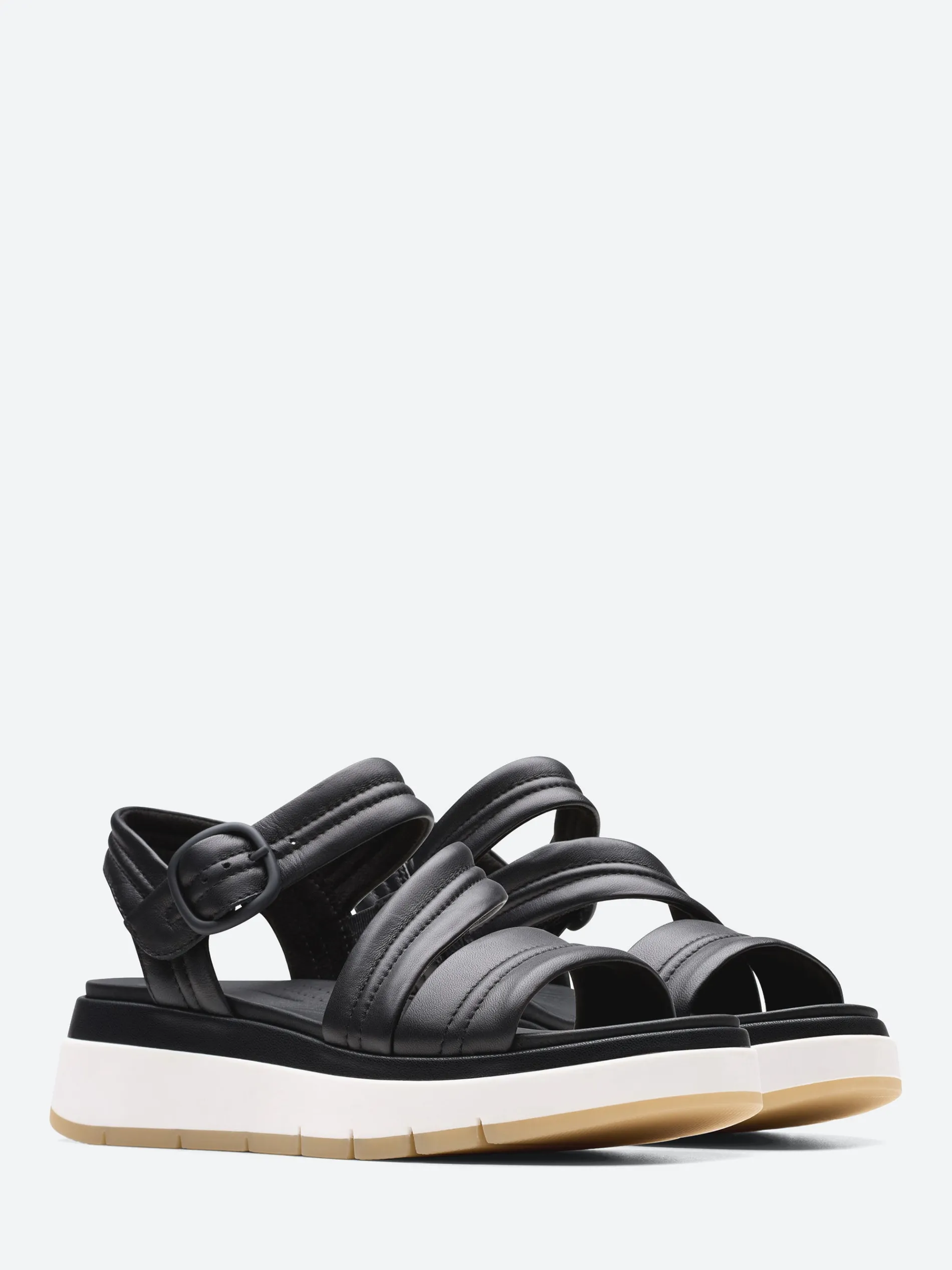 An effortlessly cool sandal to style up or down, Tuscan Strap combines a platform-style silhouette with pillow-soft cushioning. A bold black strappy leather upper wraps the foot perfectly, while Clarks’ signature Contour Cushion footbed and flex-grooved sole keep you light on your feet – from running errands at home to spontaneous city getaways.