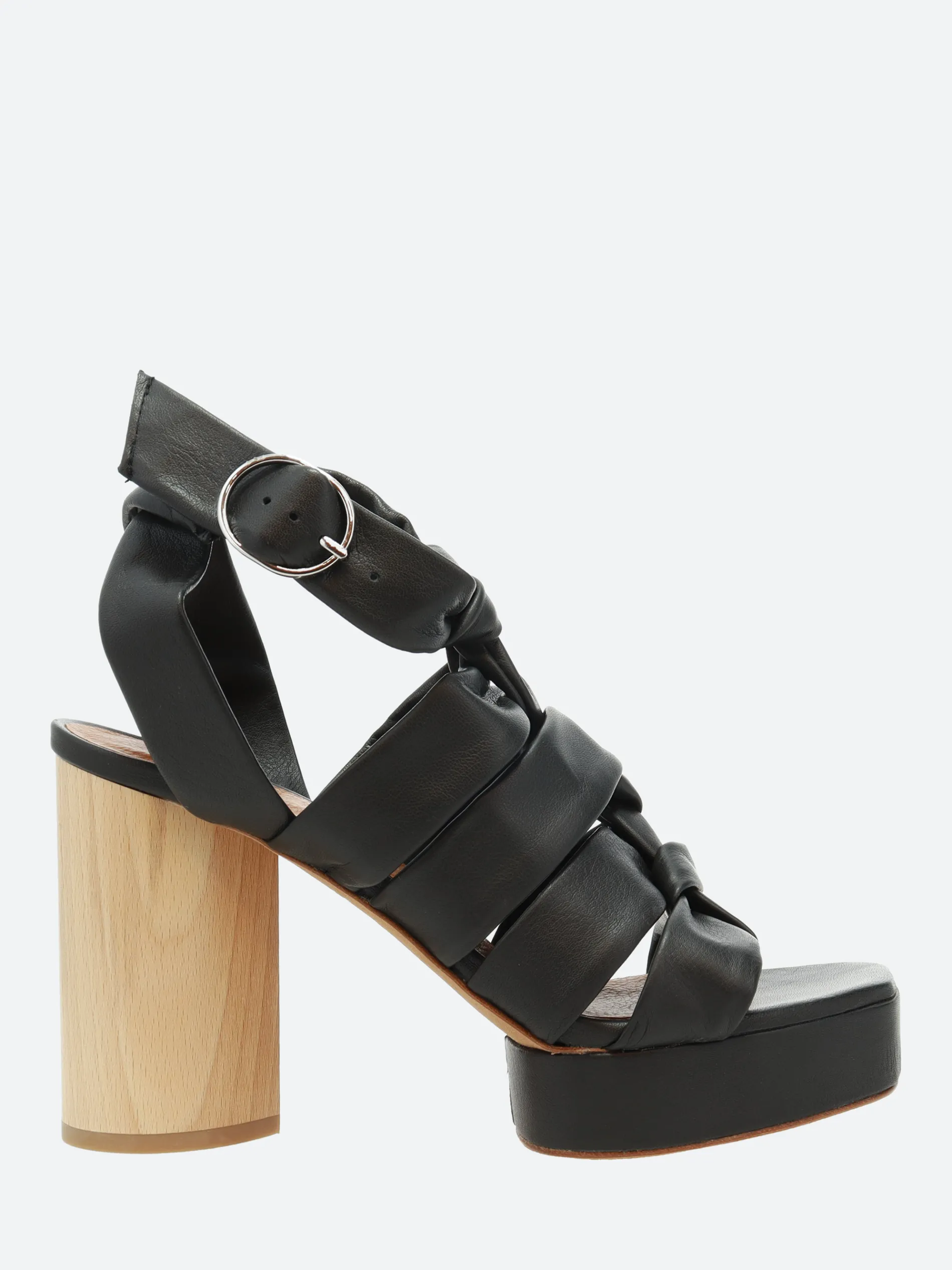 The April Heel features a soft but structured tubular leather vamp with an adjustable ankle strap closure.