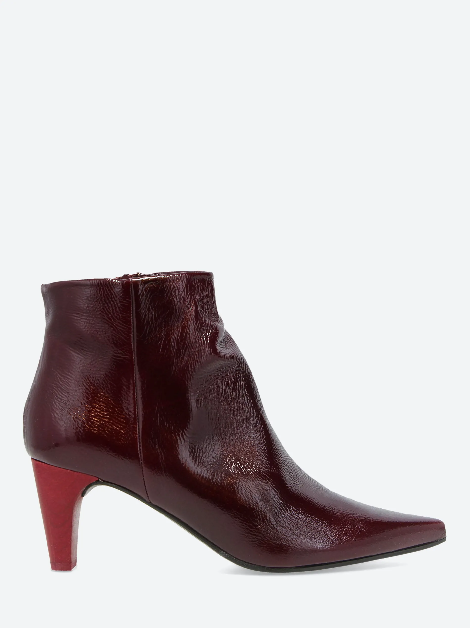A timeless day-to-night wardrobe essential, the Plato pointed-toe ankle bootie is made up in chic black leather. Featuring a sculpted solid wood oval heel hand painted in a striking red wash. Wear casually with denim or dress to the nines, Plato is the ultimate shapeshifter.