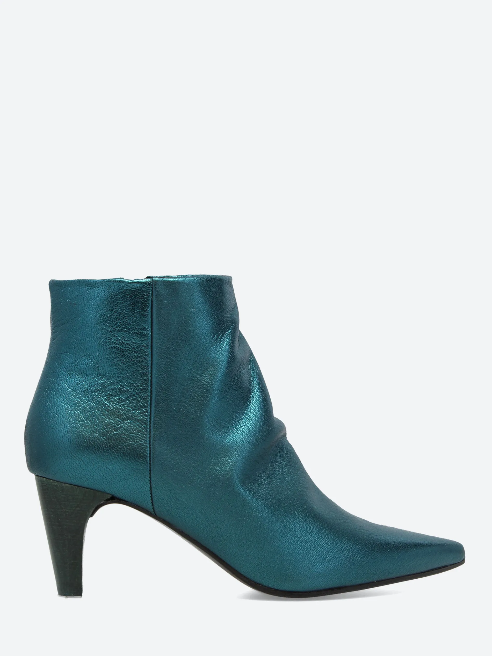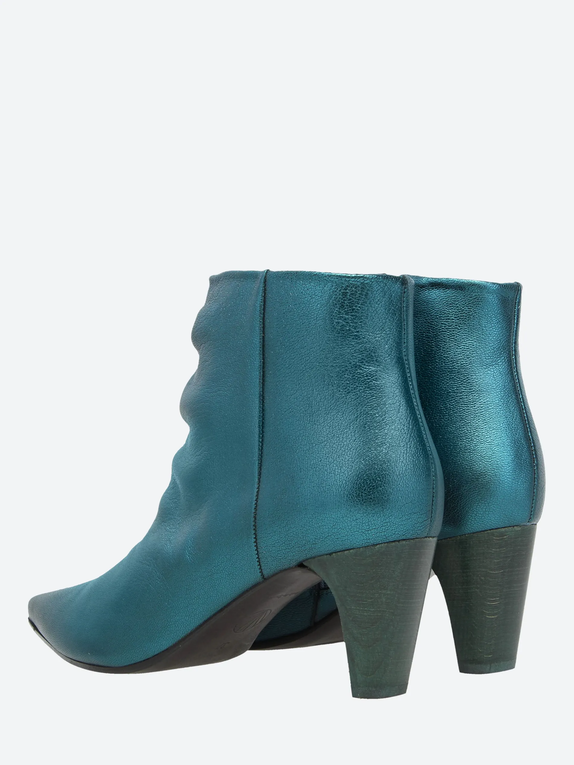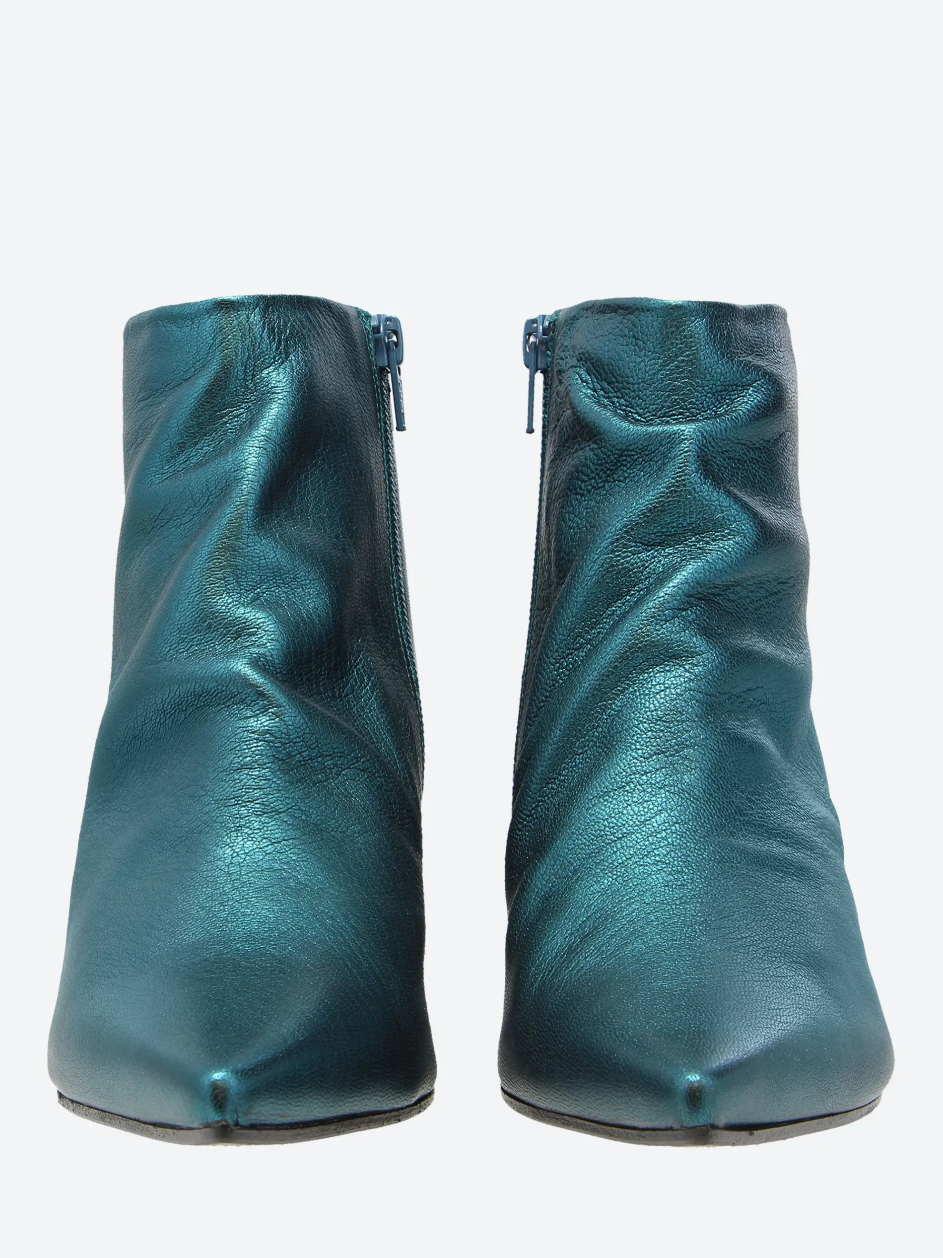 A timeless day-to-night wardrobe essential, the Plato pointed-toe ankle bootie is made up in chic black leather. Featuring a sculpted solid wood oval heel hand painted in a striking teal wash. Wear casually with denim or dress to the nines, Plato is the ultimate shapeshifter.