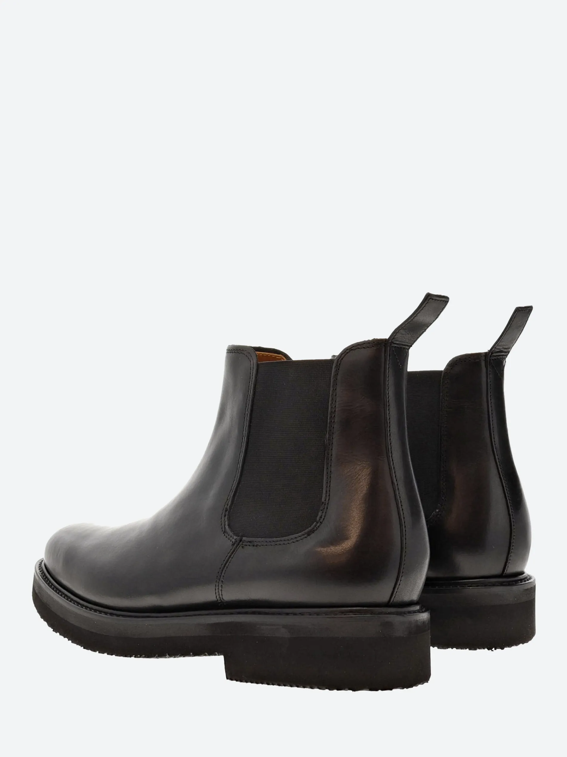 Grenson Colin is a classic, super sleek Chelsea boot made from a classic black calf leather with tonal welt and sole. Sits on a hardwearing Dainite sole with a leather waist for grip and performance.