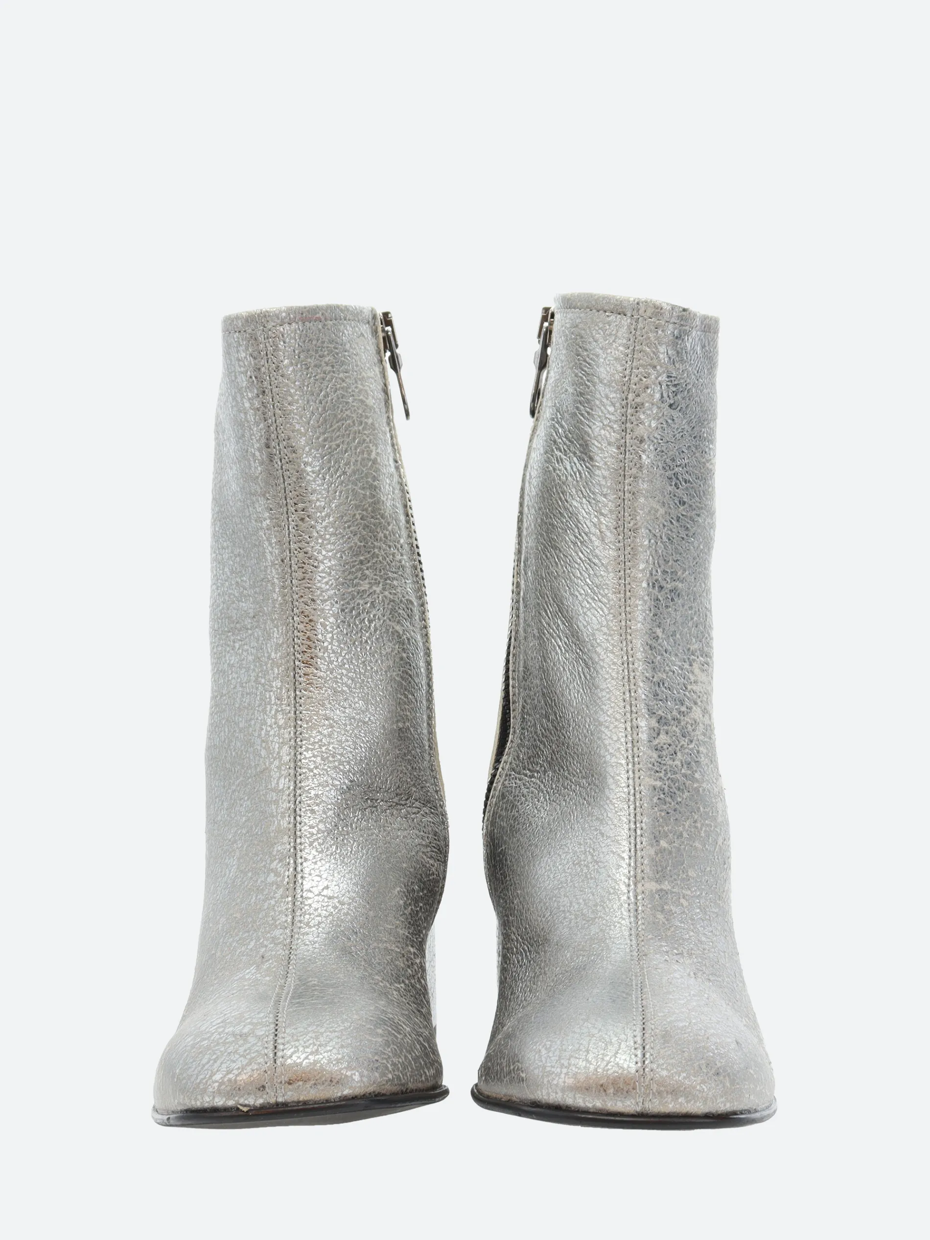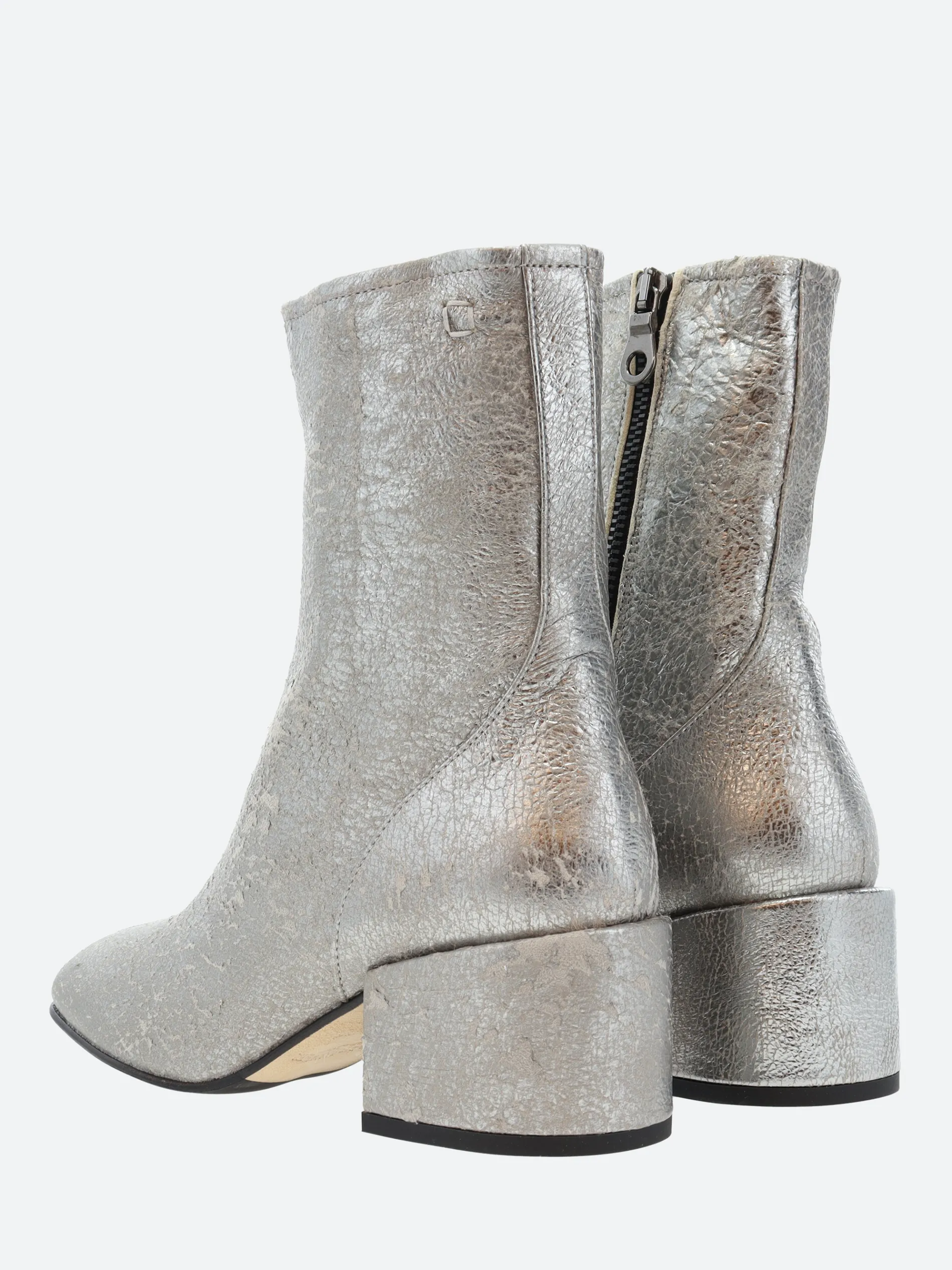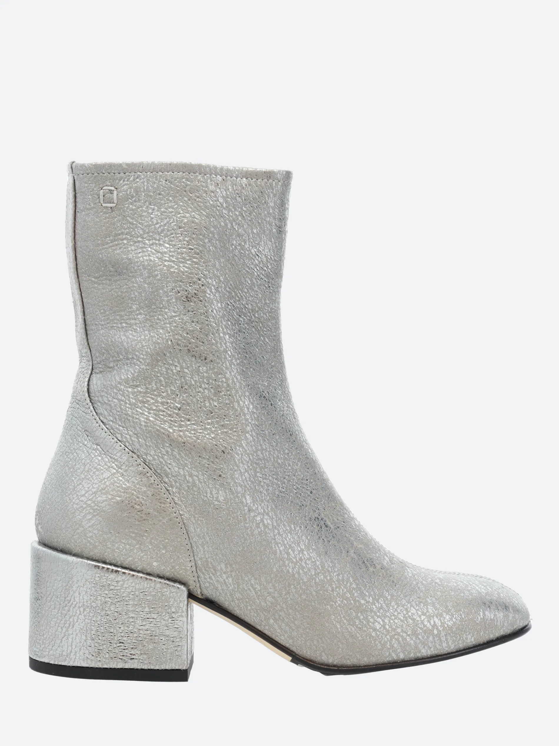 Collection Privee mid-calf high boots made from, metallic leather, and raised on a block heel.