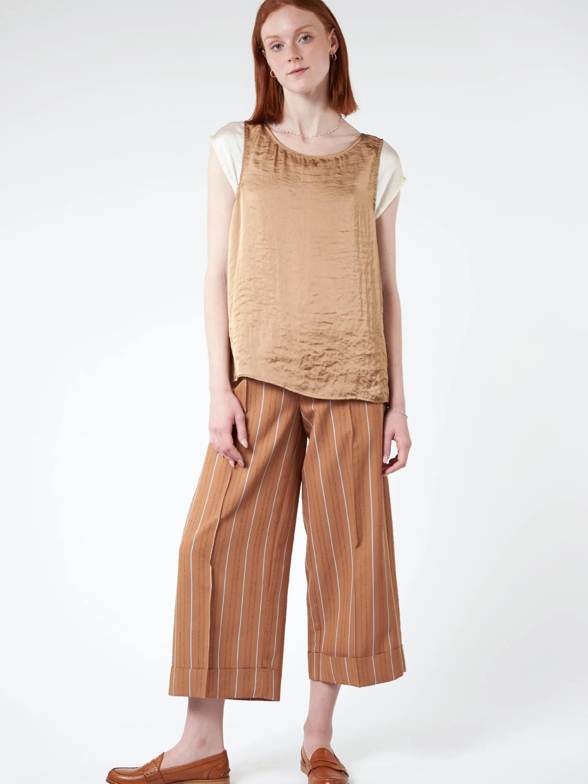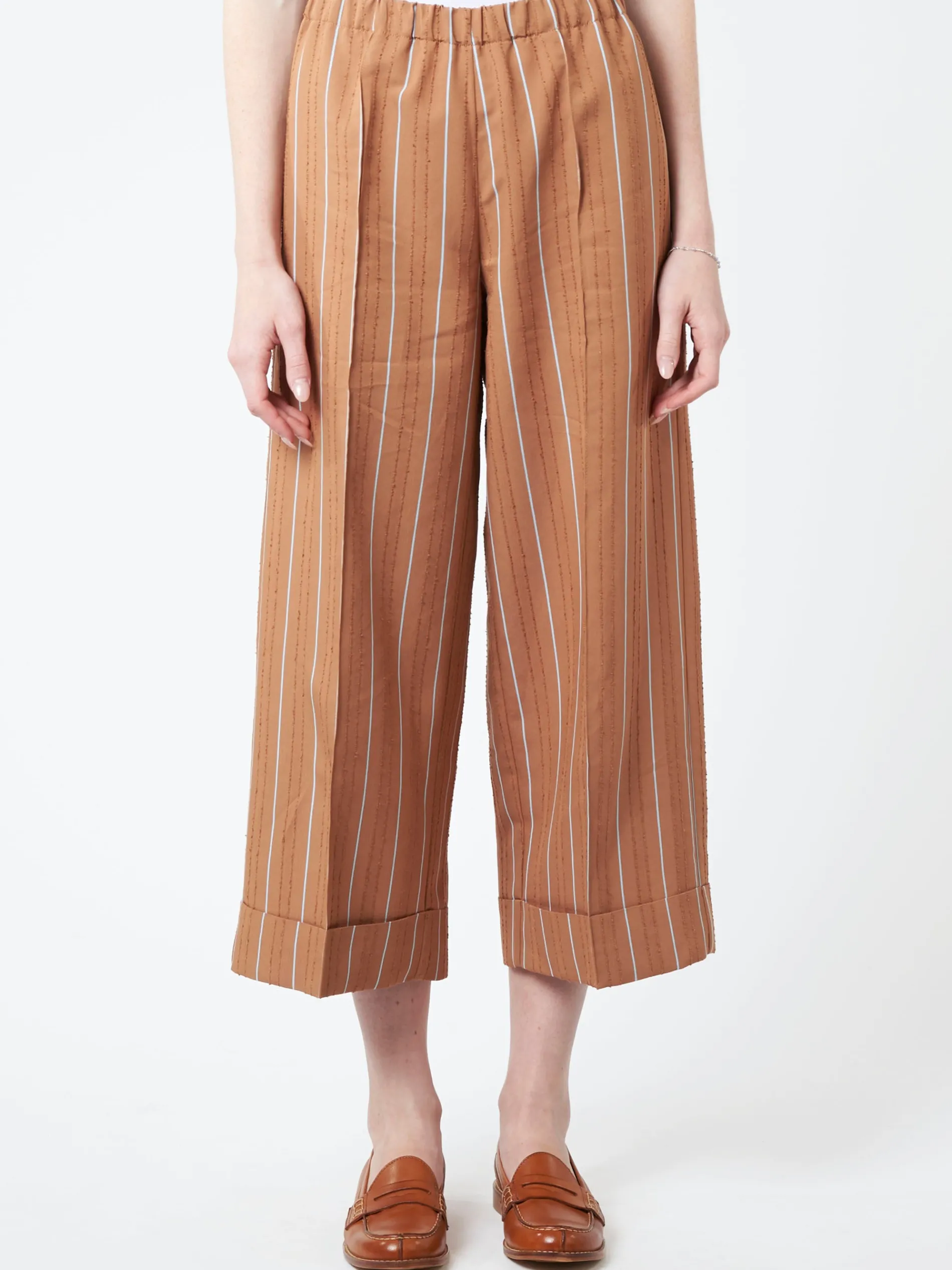 Collection Privee pinstriped palazzo trousers with elasticated waistband. Cropped length with a wide leg.