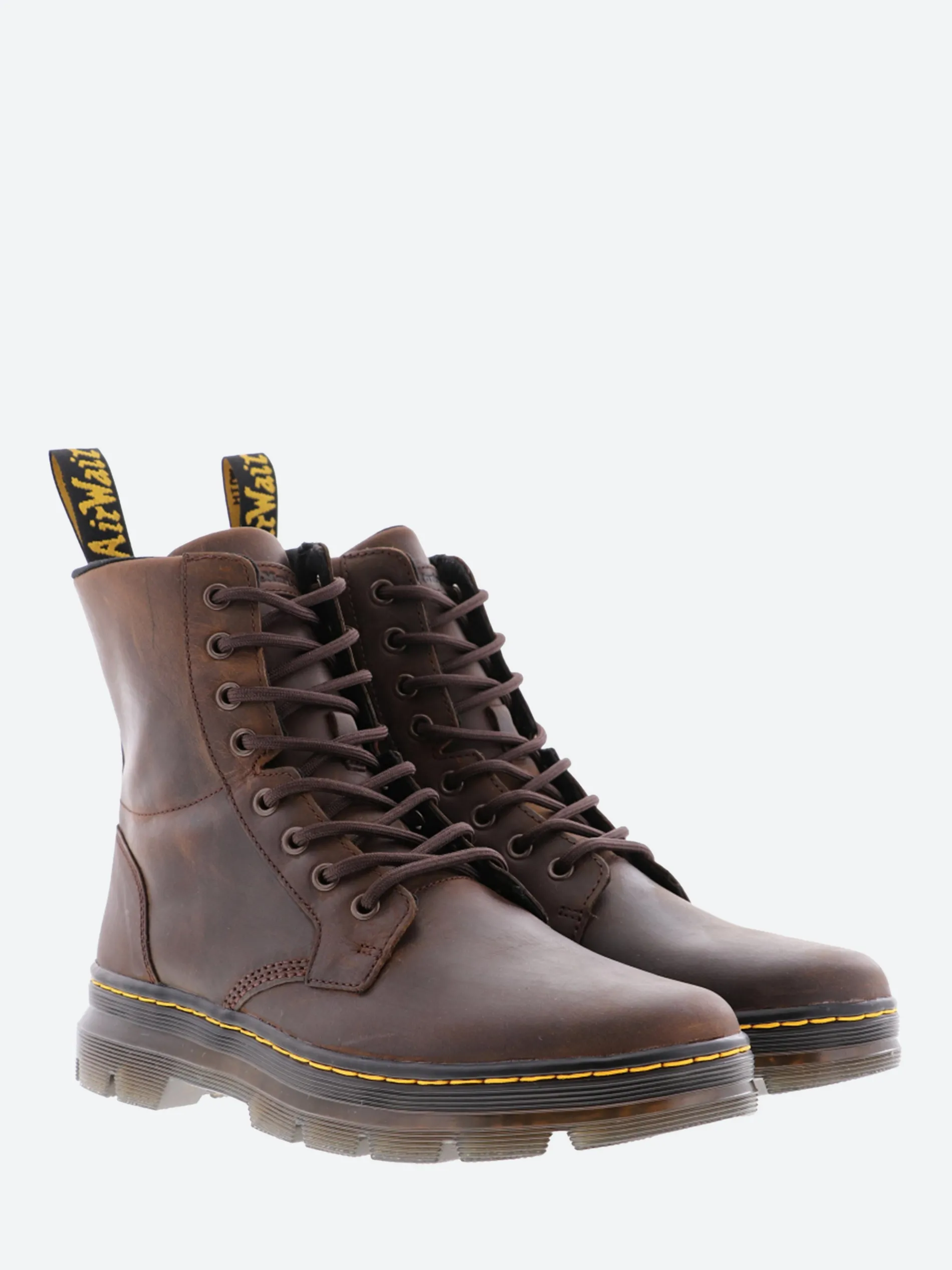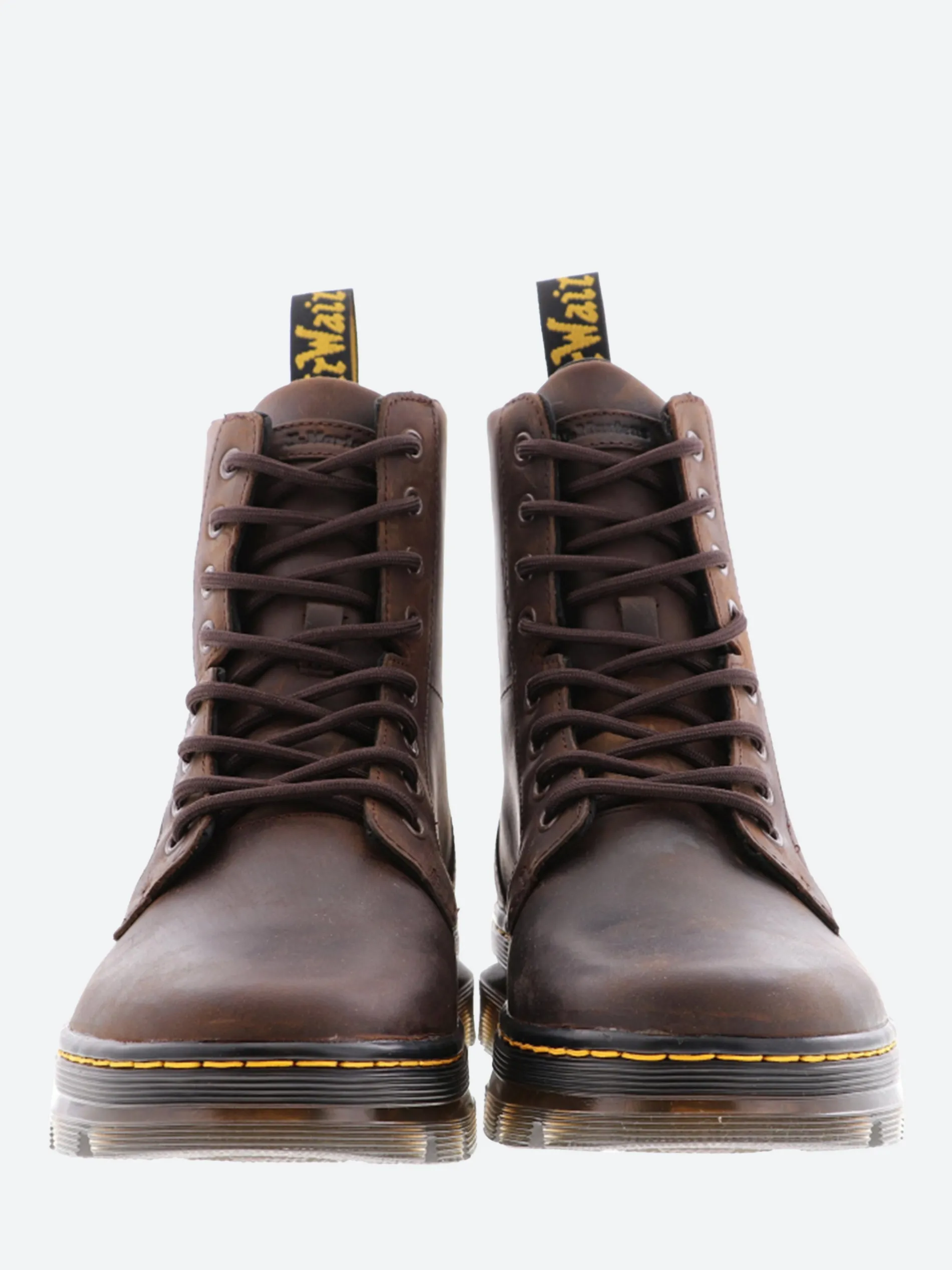 Dr. Martens Combs II 8-eye boot was created to withstand anything with serious style. Made with textured leather, the Combs is rugged and durable yet lightweight.