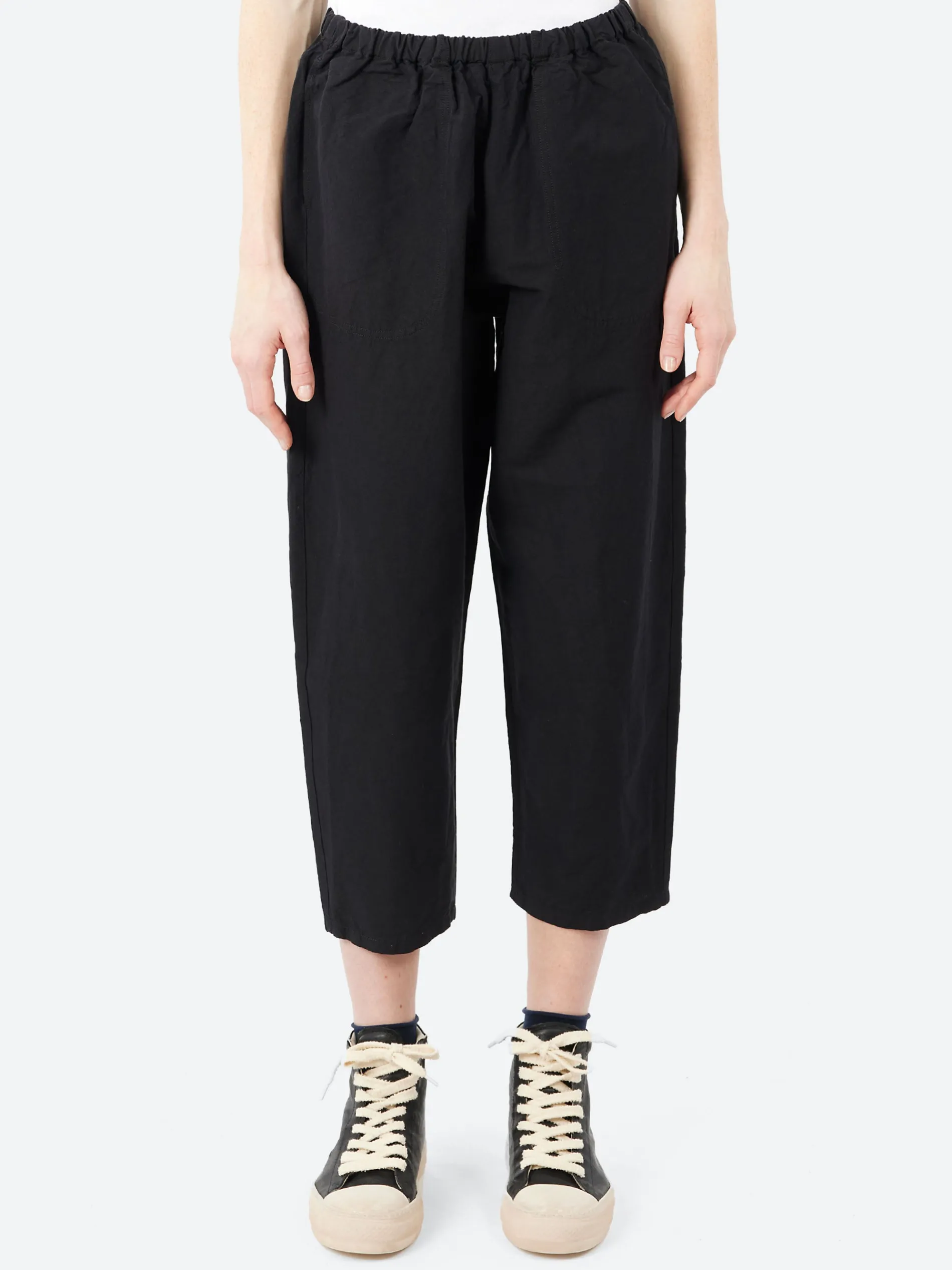 The Danton Cotton Linen Twill Easy Pants are cropped, pull-on pants crafted from a durable cotton-linen blend. They feature an elastic waistband with an internal drawcord, allowing for a customizable and comfortable fit. A subtle DANTON logo patch on the back pocket adds a touch of detail. These easy pants are perfect for relaxed, casual wear, combining comfort, style, and versatility.