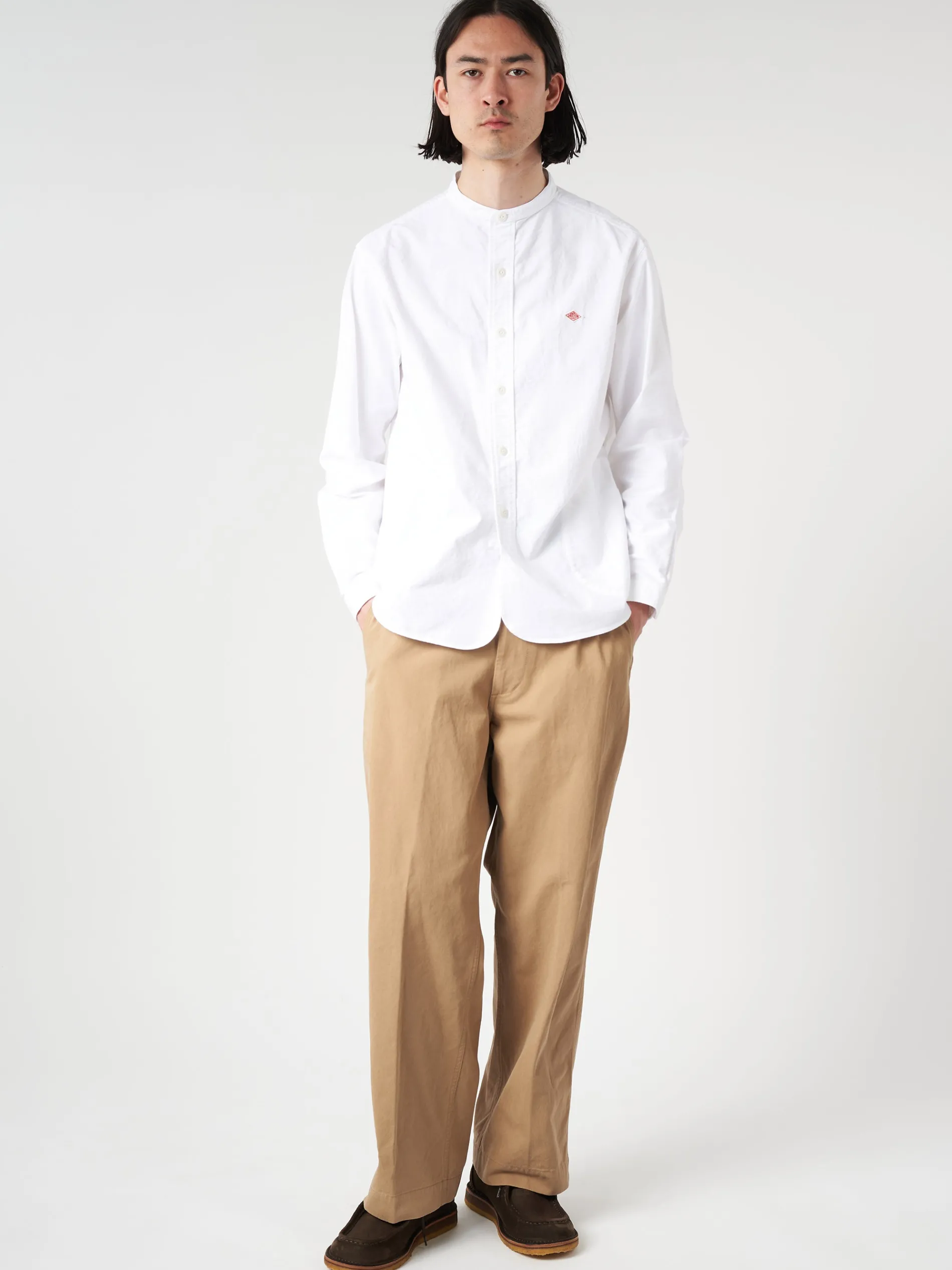 Danton band collar shirt cut from cotton oxford. A classic piece with a touch of the brand’s original functionality.