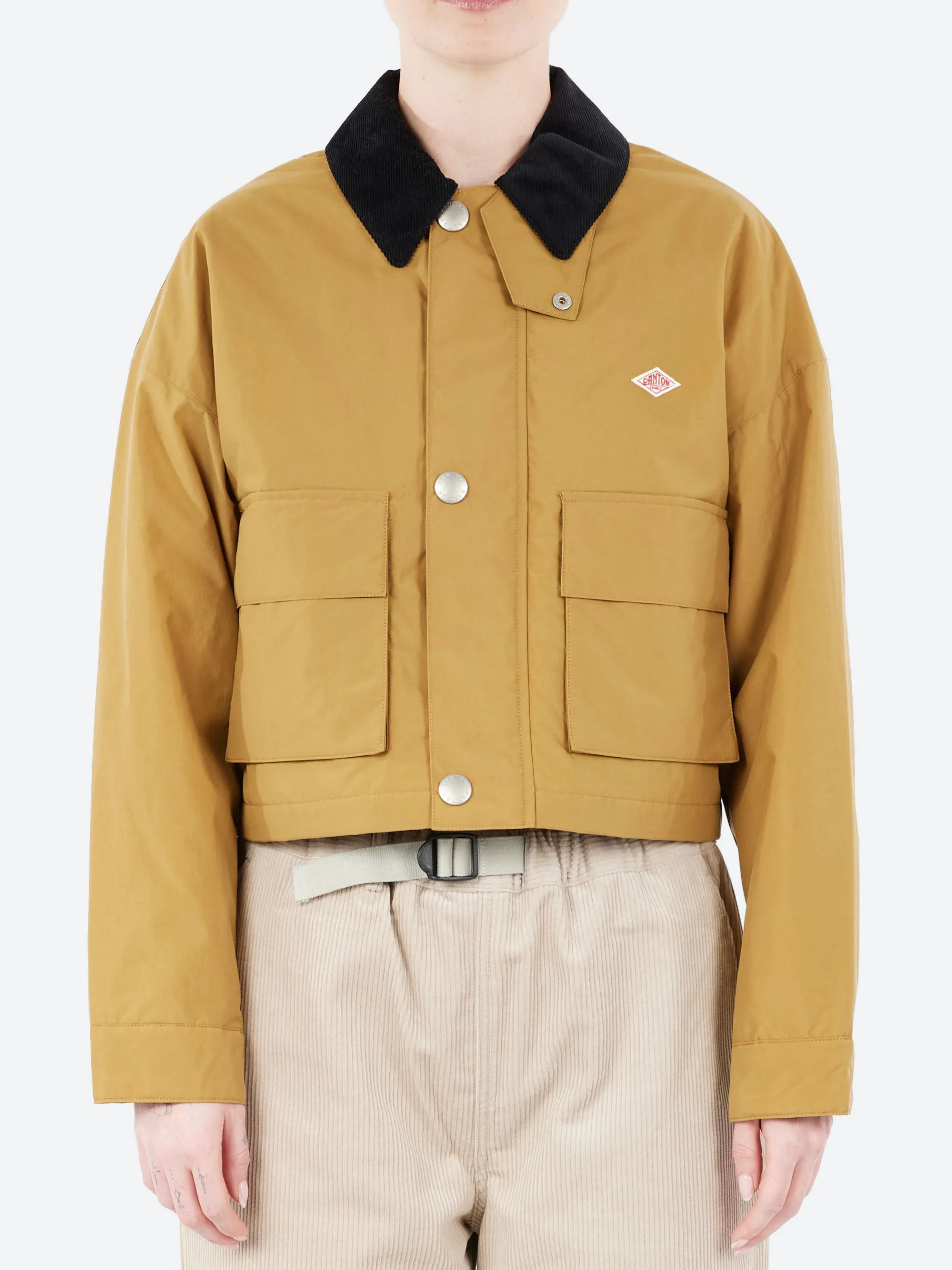The Danton short jacket boasts a corduroy collar, providing a touch of elegance and sophistication. Crafted from high-quality nylon and for added practicality, it also features a coating for water repellency.