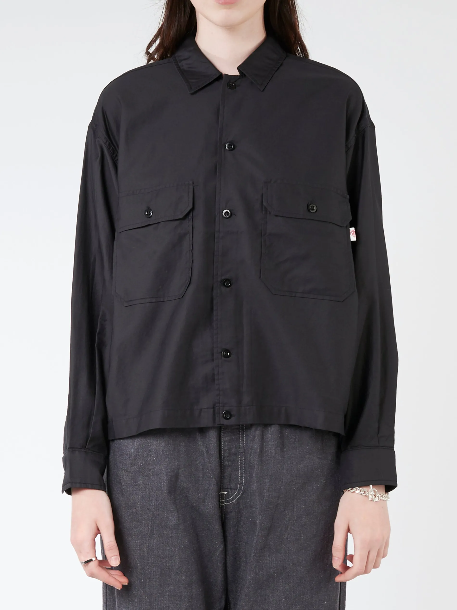 Danton shirt short jacket made from pure cotton with a subtly glossy feel. Finished with a boxy silhouette and a cropped length.