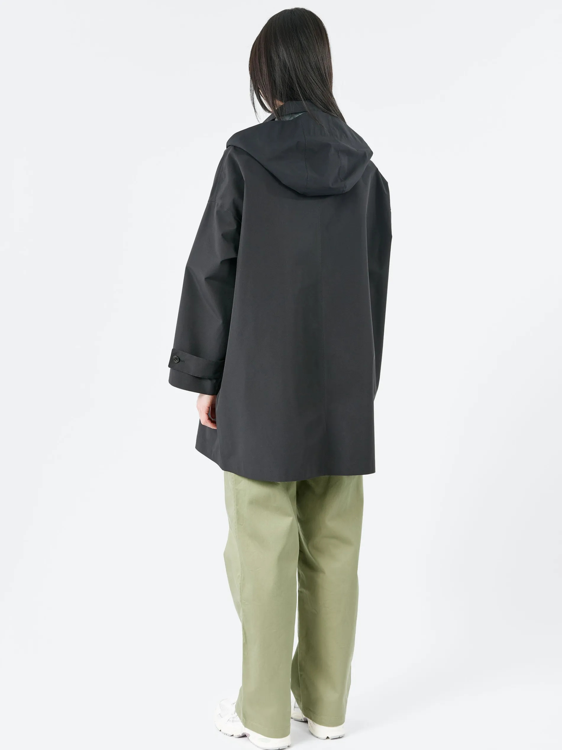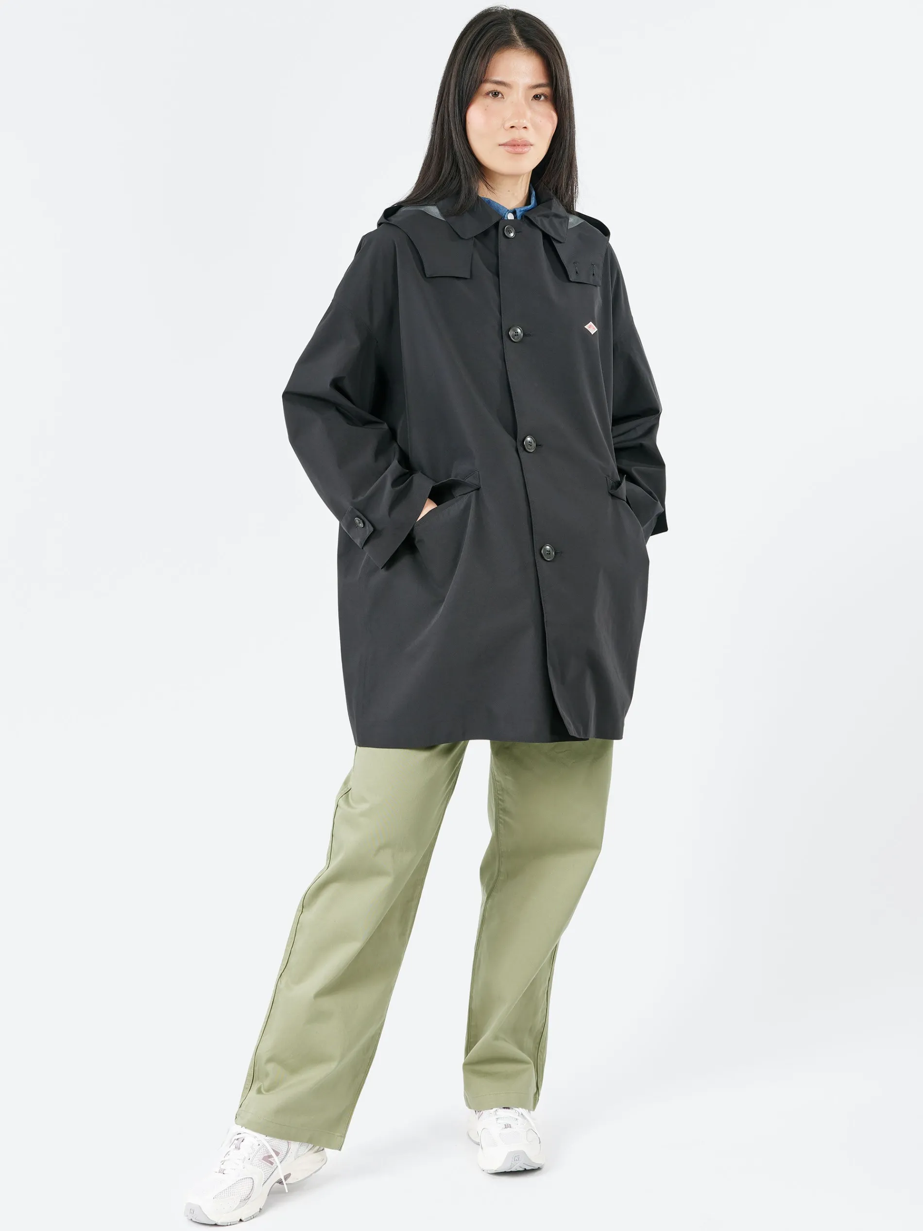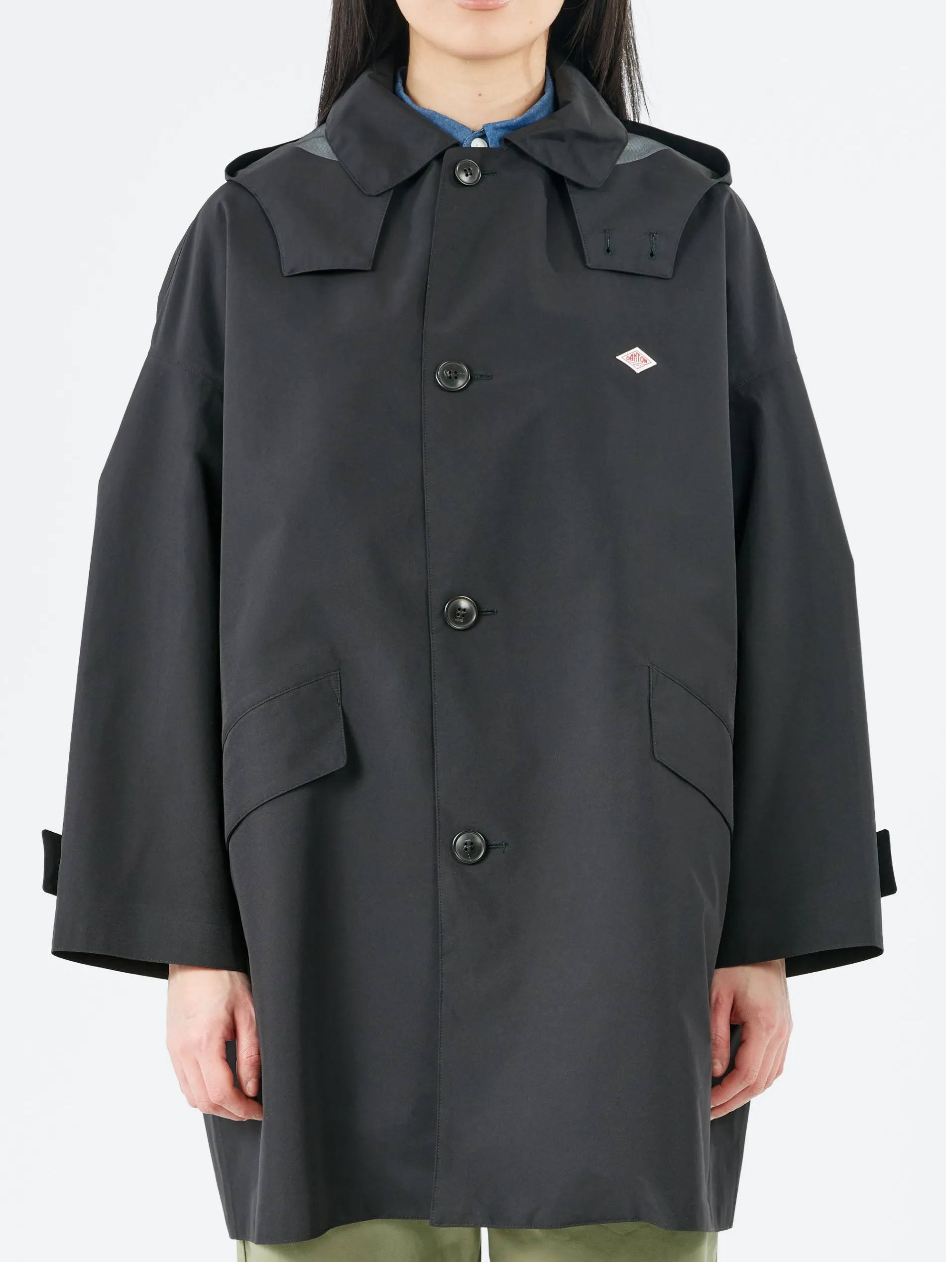 Danton’s Balmacaan with a detachable hood, made with 3 layers of high-functional structured polyester fabric. Excellent water and wind protection.