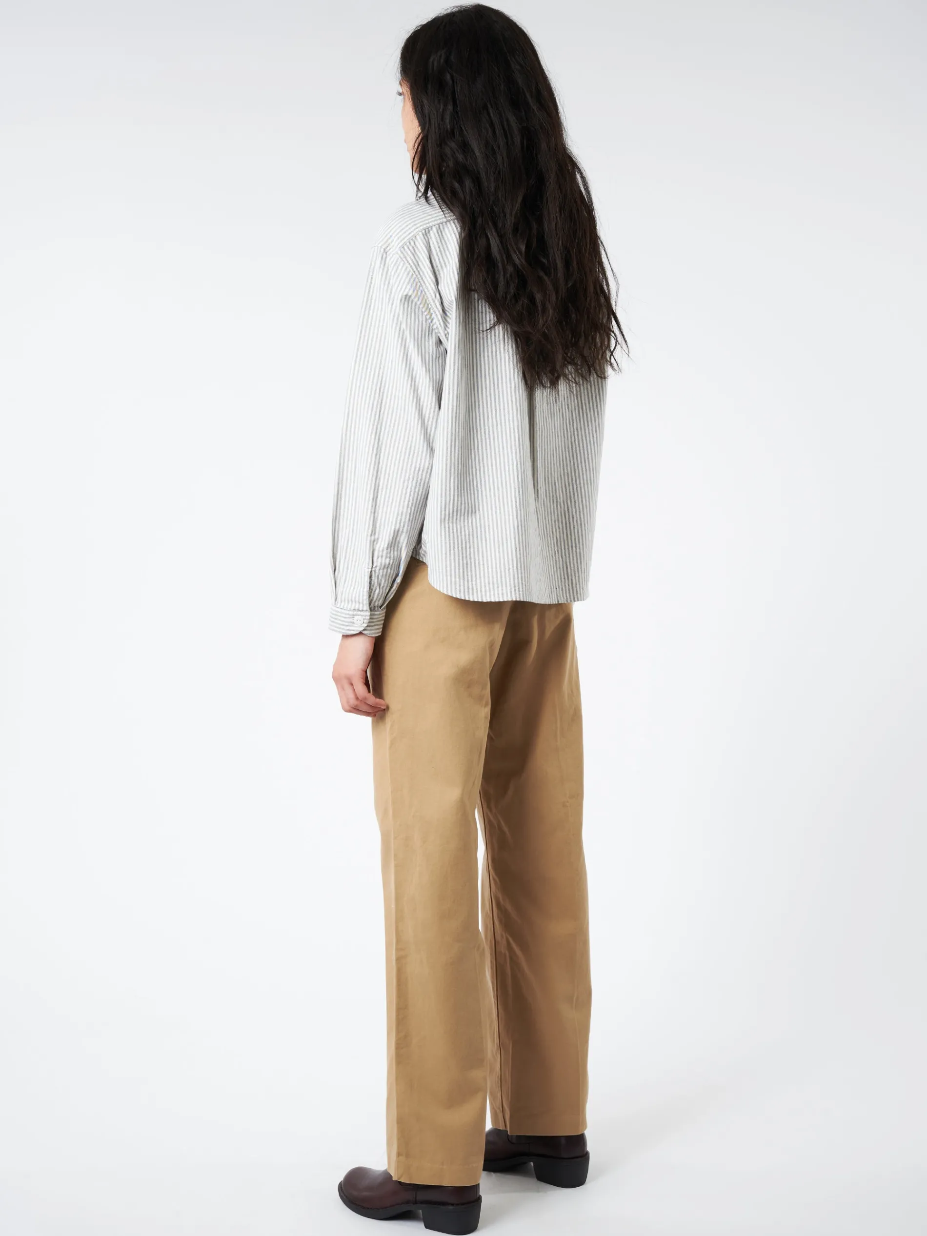 Danton’s signature round collar shirt with newly designed wide silhouette. Made with Japanese oxford fabric woven with high quality supima cotton, which is known for its extra-fine quality and texture.