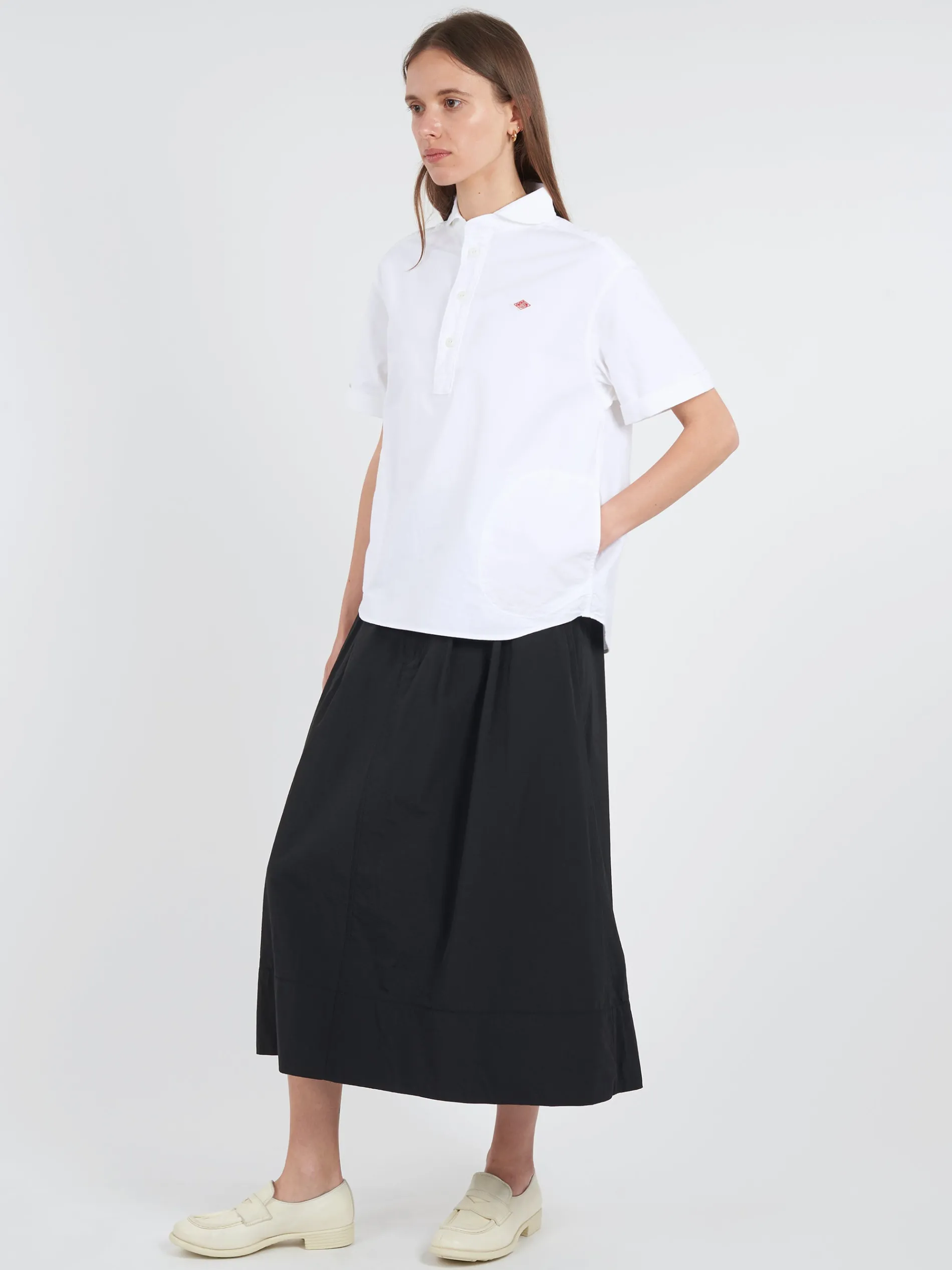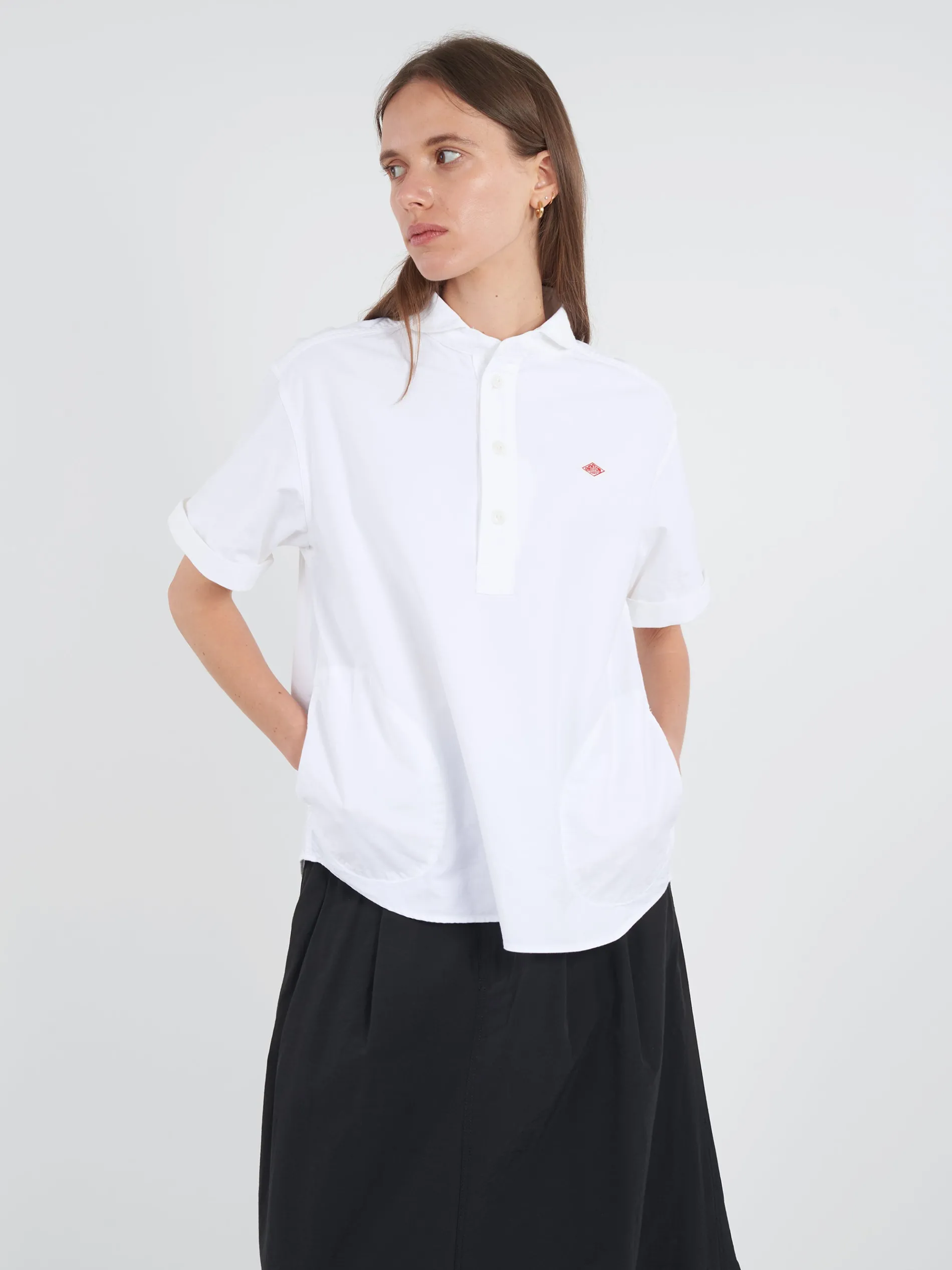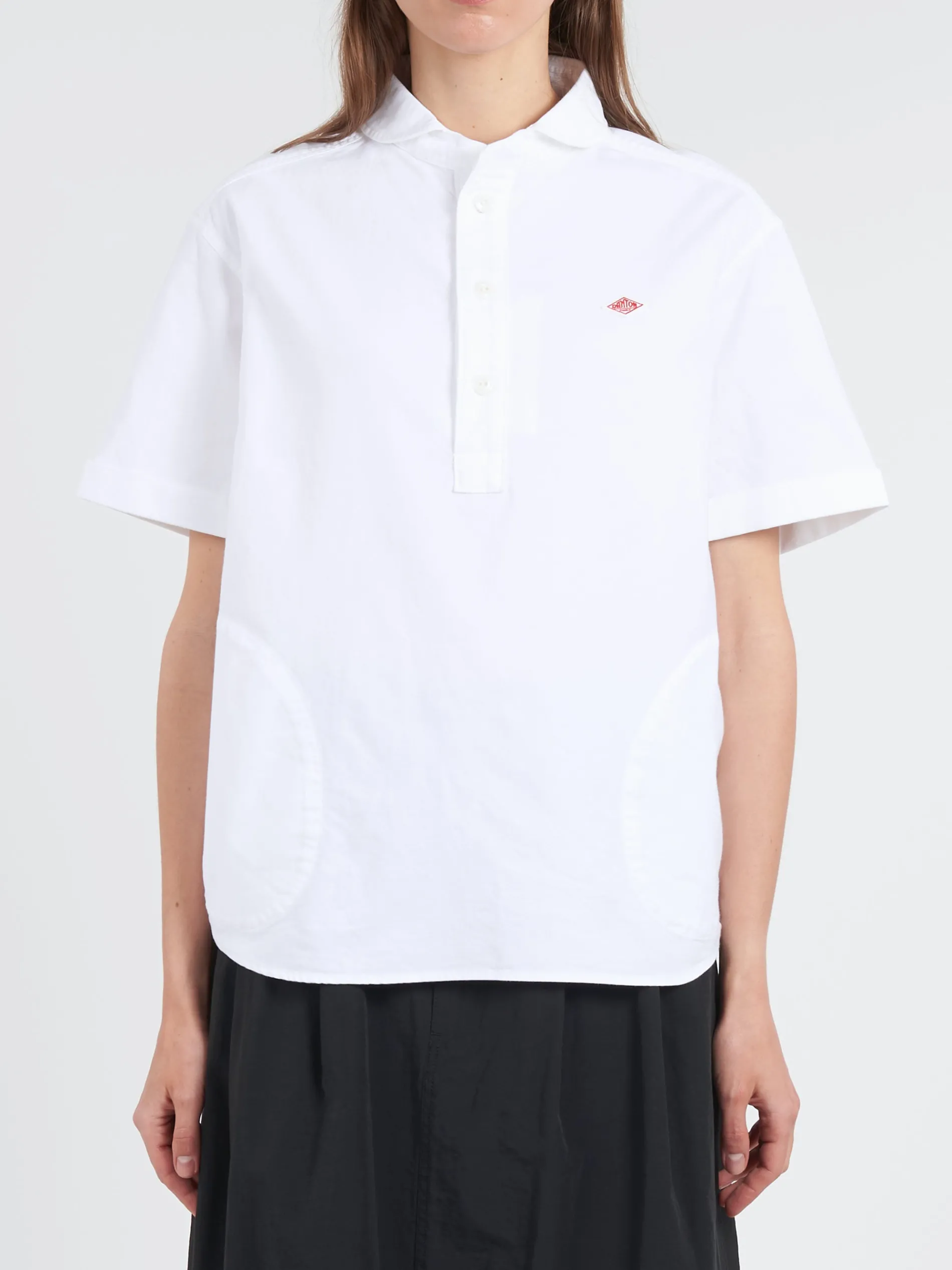 Danton class round collar popover shirt constructed from cotton oxford. Accented with the brand’s logo emblem on the left chest.
